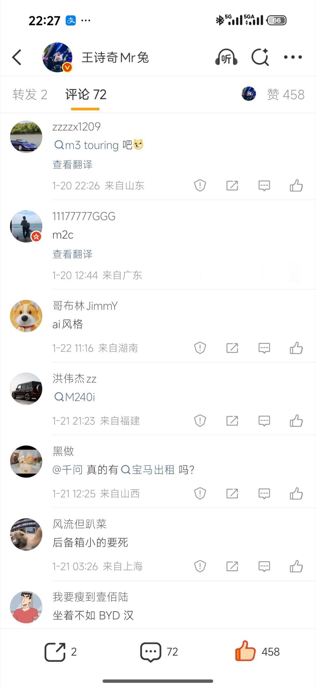 前几天说马年想买一台宝马过过瘾,网友们给我推荐了好多宝马车型,现在车终于选好了,明天早上7点飞厦门,去买阿兔人生的第一台宝马不知道有没有朋友能猜到是啥车大v聊车我和汽车的日常 北京·三里屯