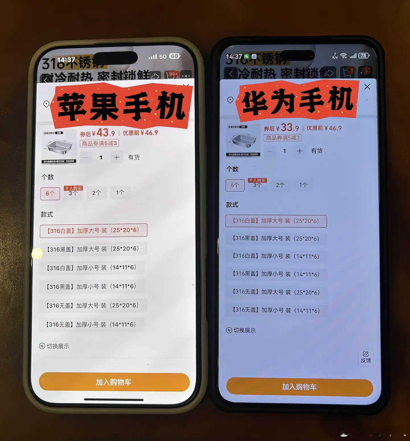 苹果用户的天塌了这不是苹果税的问题,就是平台算法和大数据在阶梯收割你!苹果税是通过ID的订阅比别人贵,这是明摆着的,但是网购价格不一样就是看你的机型来判断你的消费力,这是消费者不知情被欺骗的!你告诉我为什么老苹果就和安卓一个价了?!你用新款苹果买个小东西、打个车都比别人贵,就是算法觉得你是高消费人群,就是平台要多收割你点……苹果安卓