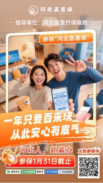 河北人注意!1月31日前这件事抓紧办!全家都能保! 家人们,年底年初忙不停,但有一件大事千万别忘了——“河北医惠保”参保进入倒计时,1月31日就截止了! 这可不是普通的商业保险,是咱河北省医保局亲自指导的惠民项目,实实在在的政府背书,靠谱! 为啥说它值得每个河北家庭考虑?简单说就三点: 第一,门槛超低,覆盖超广。 不问年龄,不问职业,连身体有没有毛病都不问!只要你是河北医保参保人,或者在河北生活工作的外地医保朋友,都能买。从刚出生的娃娃到百岁老人,全家老小一个价(按年龄段分99/139/179元一年),真·普惠。 第二,保障实在,补充刚需。 医保报销后,自己掏的“院内+院外”费用还能接着报,全年最高能到600万额度。最打动人的是包含了100种特药和先进的CAR-T疗法,这些抗癌“神药”往往价格惊人,它能给报销大部分(健康人群报80%),真是大病面前的“定心丸”。 第三,方便省心,服务贴心。 在省内不少医院可以“出院即结算”,不用再折腾收集票据跑报销。还附带18项健康管理服务,平时也能用上。 ⏰ 特别提醒时间节点: 现在抓紧办,保障还能早点生效。1月10日前参保,保障1月11日就开始;1月31日前参保,保障从2月1日开始。 错过就要再等一年! 一年百来块钱,可能就是一餐饭、一件衣服的钱,却能给全家添一份高额的医疗兜底。在疾病风险面前,多一层保障,就多一份从容。尤其是家里有老人、身体情况买不了其他商业保险的,这个机会真的别错过。 为自己,为家人,花几分钟了解一下。参保通道已经开放,搜索“河北医惠保”官方平台就能办理。 给自己和家人一份安心,给未来一份保障。转发提醒身边在乎的人!