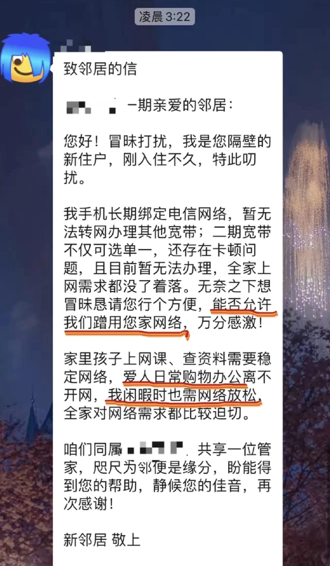 对不起不好意思,这个小区不允许白嫖,我可以帮你办理网络宽带。