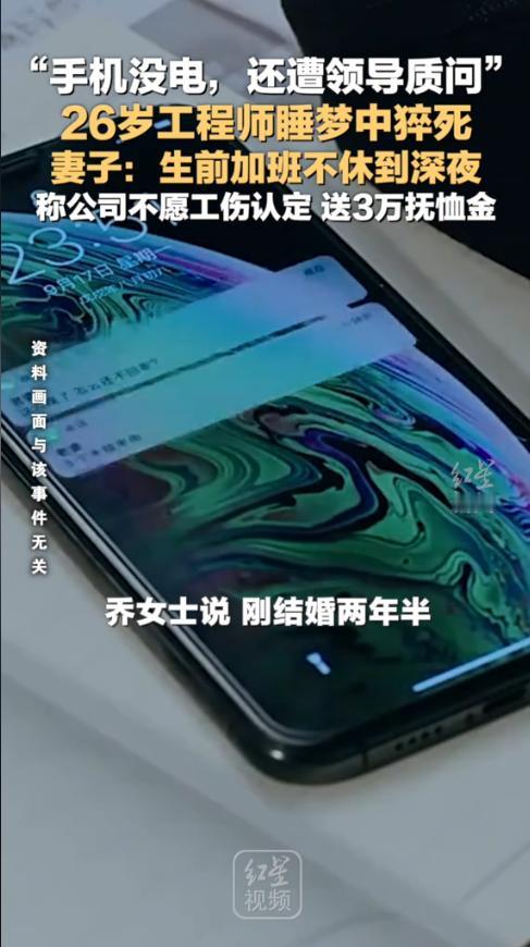 “悲剧还是发生了!”1月18日,河南开封,一26岁男子长期熬夜加班,奋力工作。这天突然在睡梦中大叫一声,昏了过去。最终抢救无效身亡,经诊断或为与过度劳累有关。妻子想申请工伤认定,可公司却冷漠拒绝。网友:年纪轻轻太可惜了! 近些年来行业内圈,职场加班情况尤为严重,很多人也都在为了碎银几两卖命打拼。无论是企业还是个人似乎都觉得年轻人加班熬夜没什么事,大家都一样过来的。可是过度透支健康、长期超负荷工作,终会酿成无法挽回的悲剧。 陈先生是一名外派工程师,今年26岁,每个月工资7000多,家庭的重担都在他身上。为了还房贷,养孩子,他每天都努力工作,近几个月来更是加班到深夜,就算是临时有工作如果没带电脑,也会找网吧处理事务。 据陈先生妻子讲述,这天凌晨,熟睡中的丈夫突然大叫一声,而后就昏了过去。家里人见状赶紧将他送到医院,可仍旧抢救无效去世。医生诊断或与过度劳累有关。 想到家中的“顶梁柱”没了,而家里还有孩子要养和50多万的房贷要还,乔妻子顿时觉得天都塌了,想向公司提出工伤认定申请,可公司却只送来3万元抚恤金,便没了踪影。 网友看后表示,月薪7000这么卖命,不就是为了生活吗,不然谁愿意拿健康换明天?在家中去世的,公司拒绝赔偿,一点保障都没有。也有人感慨,普通人的日子都太难了,年纪轻轻就这样没了,实在太可惜了。 信息来源:《长时间加班到深夜,26岁外派工程师家中熟睡中猝死,妻子:公司不愿走工伤认定,仅收到3万元抚恤金》新黄河
