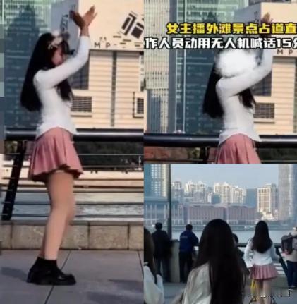 “丢人丢大了!”近日,上海,一女子穿着短裙,在外滩对着手机跳舞,此时公安正用无人机在女子周围喊话,通知女子不要占道直播,可女子根本不听,仍然忘情舞蹈,现场路人纷纷驻足围观,女子直到拍摄结束才离开。网友:太辣眼睛了! 那天外滩上演了一场不太平凡的“直播大戏”。 她穿着一条短裙,正对着镜头跳舞。舞步轻快而投入,每一个动作都像是精心设计过的短视频素材。她的眼里只有手机屏幕上的自己。 江边来往的游客和拍照的市民,纷纷停下脚步,好奇地望着这个年轻女子,竖起手机记录着这一幕。 不远处,几名公安人员已经注意到她的行为。他们迅速启动了无人机,摄像头旋转扫描,定位女子的位置。 无人机上挂着大喇叭,声音清晰而有力:“外滩禁止占道直播,你的行为已经被记录了,请立即停止占道直播!” 广播声穿过江风,飘向女子所在的位置。最初,她只是停顿了一秒,微微皱眉,但随即又继续舞动,仿佛根本没听到。 大喇叭再次响起,这一次声音更大:“你的行为已经被记录,请立即停止!不要阻碍公共通行!”女子仍然没有理会,她把手机举得更高,舞步更加忘我。 她跳着流行舞,时不时对着镜头做夸张的表情,仿佛整个外滩都是她的舞台。无人机在空中盘旋,警员透过屏幕看到她完全沉浸在自己的表演里,眉头紧锁。 路人开始围观,原本散步的人群慢慢聚拢过来。有人拿出手机悄悄拍摄,有人皱眉低声议论,还有人摇头笑说:“现在的网红啊,真是随时随地都能开播。” 几个外国游客困惑地看着这边,一边用手指着女子,一边拍照留念。 江风吹起,裙角轻扬,周围闪烁的霓虹映在她的脸上,像极了那些短视频里高光的画面,但现实却是另一番景象——人群有些拥挤,行人不得不停下脚步躲闪,交通被影响。 公安耐心地广播了整整十五分钟,但女子仍然完全沉浸在舞蹈中。 围观的人群开始有些不耐烦,有人小声抱怨:“这也太不讲道理了吧,就为了拍个视频,连公共秩序都不管?” 有老人摇头叹气:“现在的年轻人啊,一天到晚就知道拍视频,真是丢人丢大了。” 终于,女子跳到自己设定的拍摄结束点,才慢悠悠地收起手机,拍了个自拍留念后,才缓缓离开。围观的人群逐渐散去,现场恢复了平静,但刚才的热闹却很快在社交媒体上扩散开来。 有人拍下的片段上传到各大平台,视频标题各异:“外滩辣眼睛直播!女子短裙跳舞被劝阻仍无视”“网红疯狂占道拍视频,警方无人机劝阻15分钟”…… 视频一经发布,评论区炸开了锅。网友们几乎一边倒地批评:“这也太自私了,公共场所不是你家的舞台。” “现在的网红真是随时随地拍个没完没了,安全意识和公共秩序都不顾。”“这种行为不仅影响他人,还可能带来安全隐患,丢人丢大了!” 也有部分网友表达了不同看法:“跳得挺好啊,不影响别人就让她跳呗。”“现在谁还没点娱乐精神呢,不用太严苛。” 媒体也迅速跟进报道,把事件描述为公共秩序与个人行为的碰撞。 分析评论里,专家提醒:“公共场所直播或拍摄本身没错,但占道行为可能阻碍行人和紧急通行,监管部门采取劝阻是必要的。” 与此同时,也有人在视频下方调侃:“这舞蹈能火,全程不理大喇叭,多专注的网红精神。” 这件事很快成为城市网络热议的话题。短短一天,相关视频播放量就破百万。 讨论不仅仅停留在女子个人的行为上,更延伸到社会现象:短视频时代,人人都是拍摄者和传播者,公共场所的秩序如何平衡与个人表达自由之间的关系,成了网友热议的焦点。