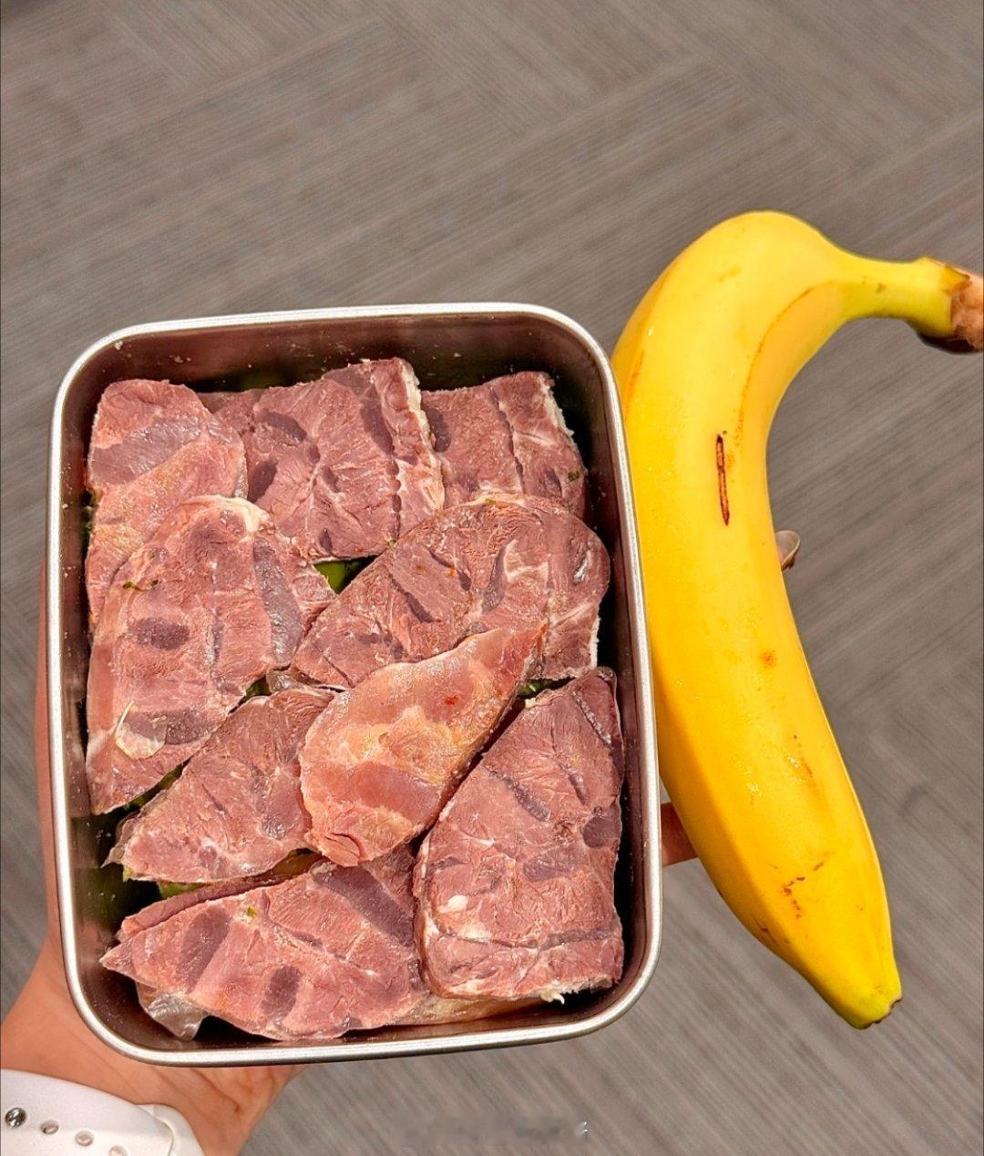 对于水肿姐妹们的科普来啦✔高强度有氧会让身体轻微发炎、钠钾失衡导致身体储水特别是健身前后注意少吃重咸口,多吃高钾食物盐会加重钠滞留,钾可以帮助身体-💦尤其是香蕉和牛肉里面都有钾又是快碳+蛋白质的组合可以及时补充能量,帮助身体-水分速度补!