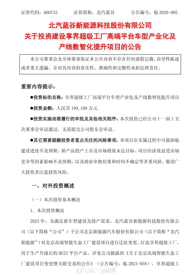 北汽蓝谷计划投资19.9亿升级享界超级工厂,对北京高端智能生态工厂建设项目进行迁址变更,打造享界超级工厂,用于生产升级后的BE22平台产品改造后已导入生产享界S9、享界S9T等车型。北汽新能源计划投资建设享界超级工厂高端平台车型产业化及产线数智化提升项目享界S9T 这款小众车型现在应该也不小众了,卖的非常不错,颜色和配置竞争力大,还有情绪价值 鸿蒙智行新能源汽车销量