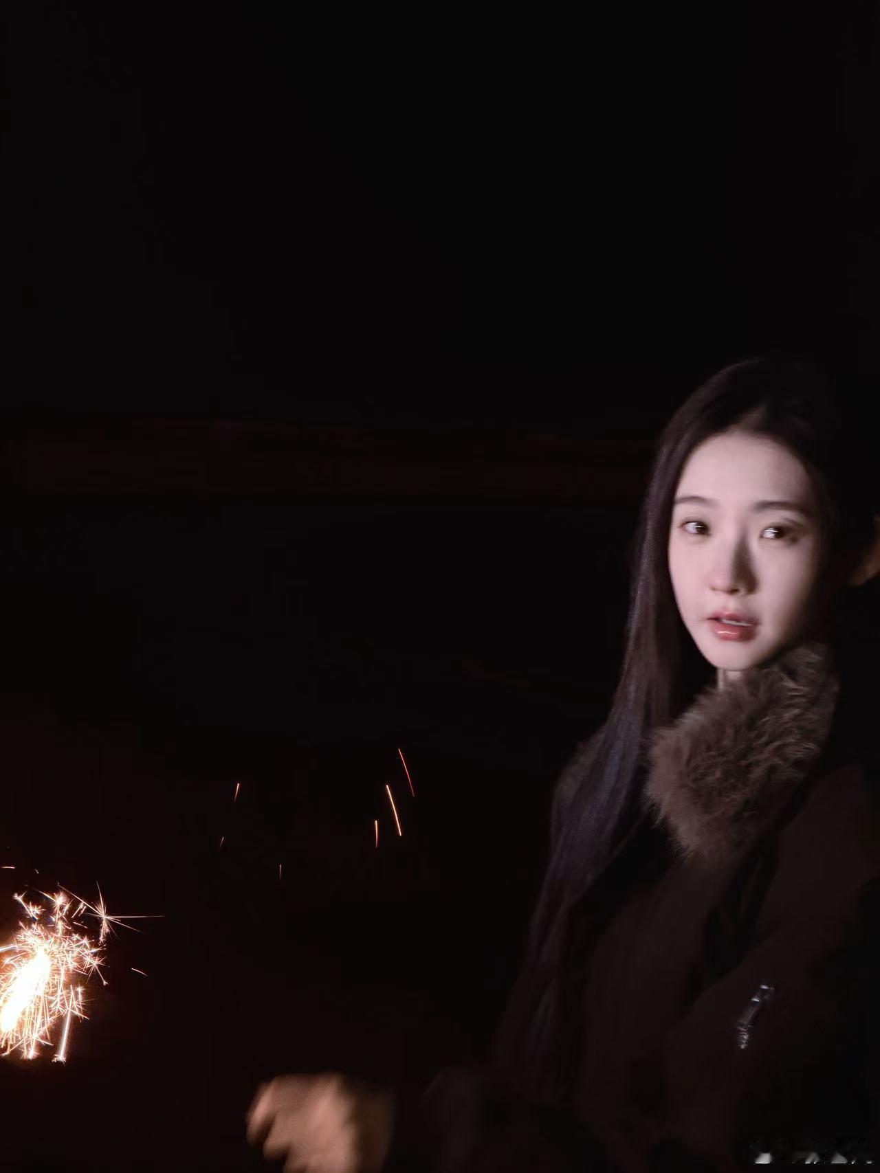 张艺凡美成大头贴张艺凡海边夜色大片真的美到我了,仙女棒一拿出来整个人都亮了,清