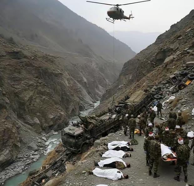 印军的一辆军车高崖坠落! 1月22日的克什米尔地区,印度军队坠崖,至少10名士兵被摔死。当时车上共有17名陆军士兵,车辆在行至山顶附近时,突然冲出路面滚入61米深的峡谷。只能说没办法,看看这些高山峡谷中的道路,完全就是贴着山边在修路。 一边是万丈深渊,一边是狭长狭窄的道路,而且又窄又难走。反正让博主来开车的话,博主是真的不敢。这不是考验车技,而是考验勇气。 克什米尔地区位于青藏高原和帕米尔高原之间,到处都是高山峡谷,而且随着印度洋板块,持续向北挤压亚欧板块,这些高山峡谷的险峻程度,只能越来越险峻,而不是有所缓解。以前博主看八九十年代,咱们的汽车兵上青藏高原,那也是真的危险。那么狭窄的道路,走汽车危险到了极致。 对于印度这边来说,从平原往高地上进发,那也是危险重重。至于说什么祝福,或者是一路走好的话,博主就不说了。只能说既然你们印度军队选择上高原,那就要承担上高原的后果。那就是从海拔很低,然后爬到海拔很高的地步,那只能是接受这样的结果。 危险并不是每一次都会发生,但是局面就是这样的。在整个中印巴三国边境区域,都是这样的高山峡谷,就看谁的基建实力更强,如果没有好的基建实力,想在高原上立足,没那么容易的。