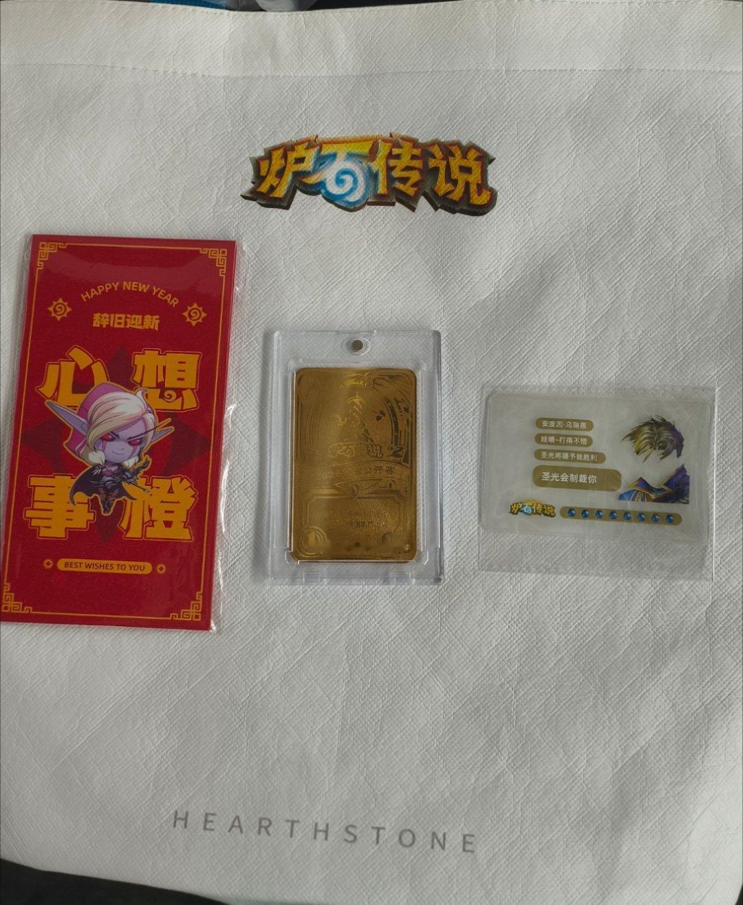 炉石传说兄弟们!送福利啦!广州黄金赛的周边:共有一个时尚袋子,一打红包,一个金