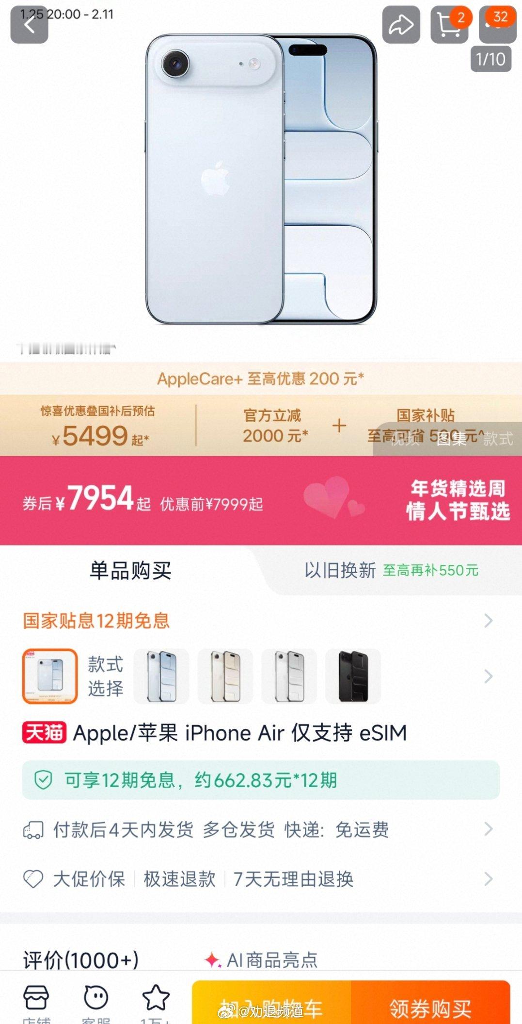 iPhone Air官方价格暴跌2000元 明晚8点,限量13000台,5499元起。什么单摄、单扬声器、续航差、国行eSIM不方便……这个价格就都不是缺点了。所以咱原价买的算啥?