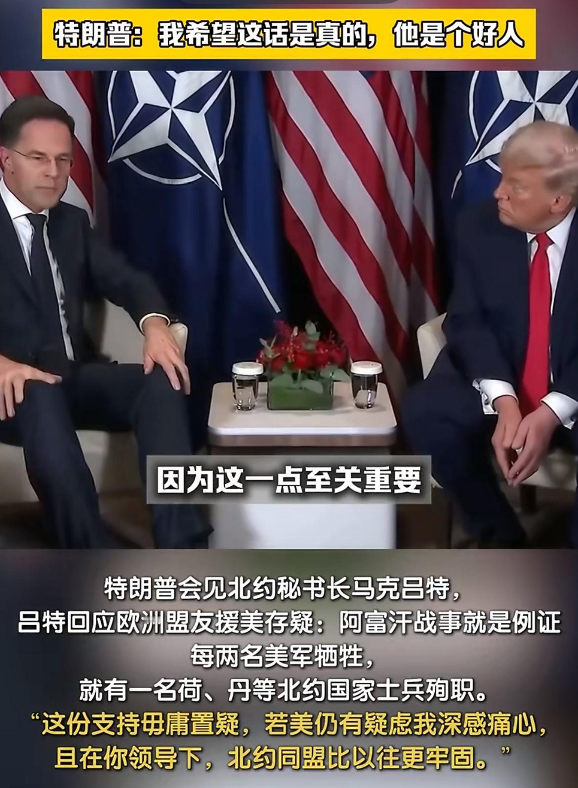 马屁精将“美国爸爸”捧得不知所措,真是孝顺至极! 北约秘书长吕特宣称:美国说什