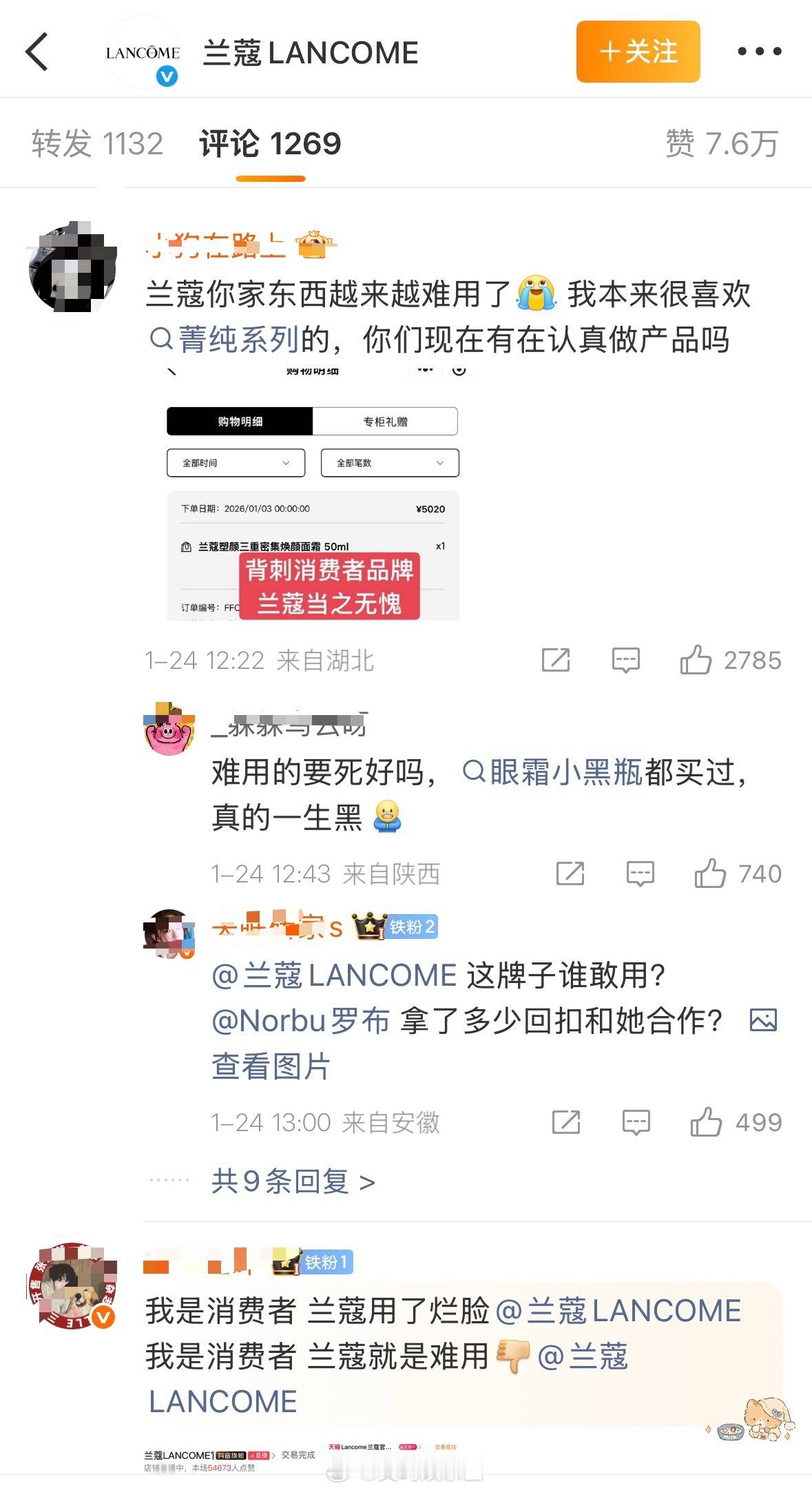 张凌赫粉丝在兰蔻评论说兰蔻烂脸,这是什么操作?!因为品牌发布的微博先艾特了张婧仪吗?