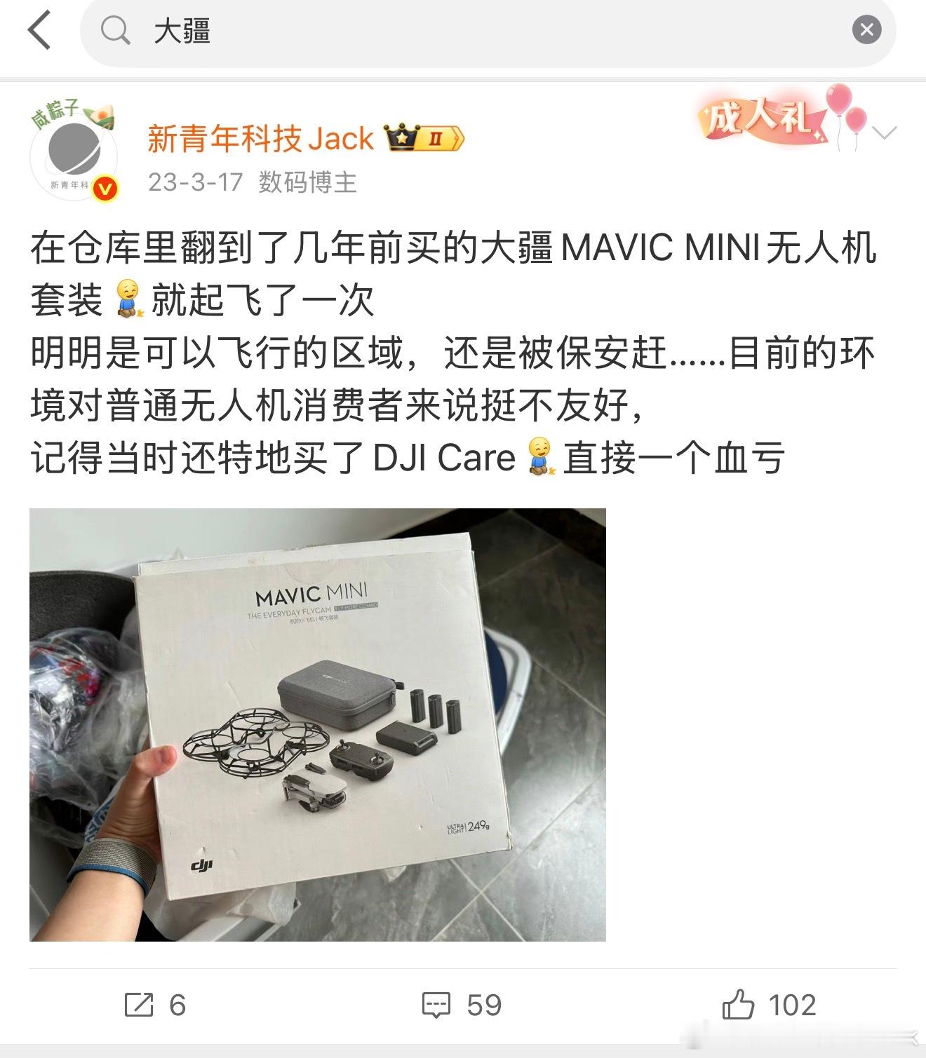 无人机现在现状就是,这不能飞,那也不能飞。几年前我就说过了,门槛会越收越紧,除了商用拍摄之外,消费级无人机基本没有更大的市场和使用场景了。