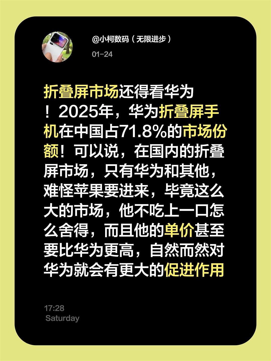 折叠屏市场还得看华为!2025年,华为折叠屏手机在中国占71.8%的市场份额!可