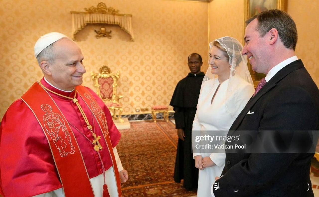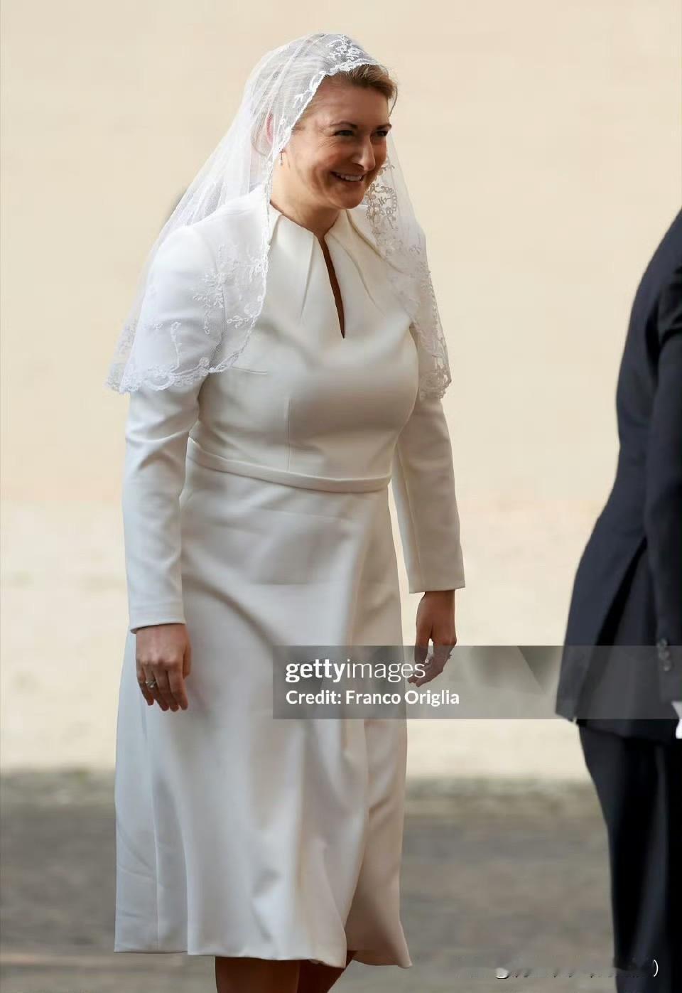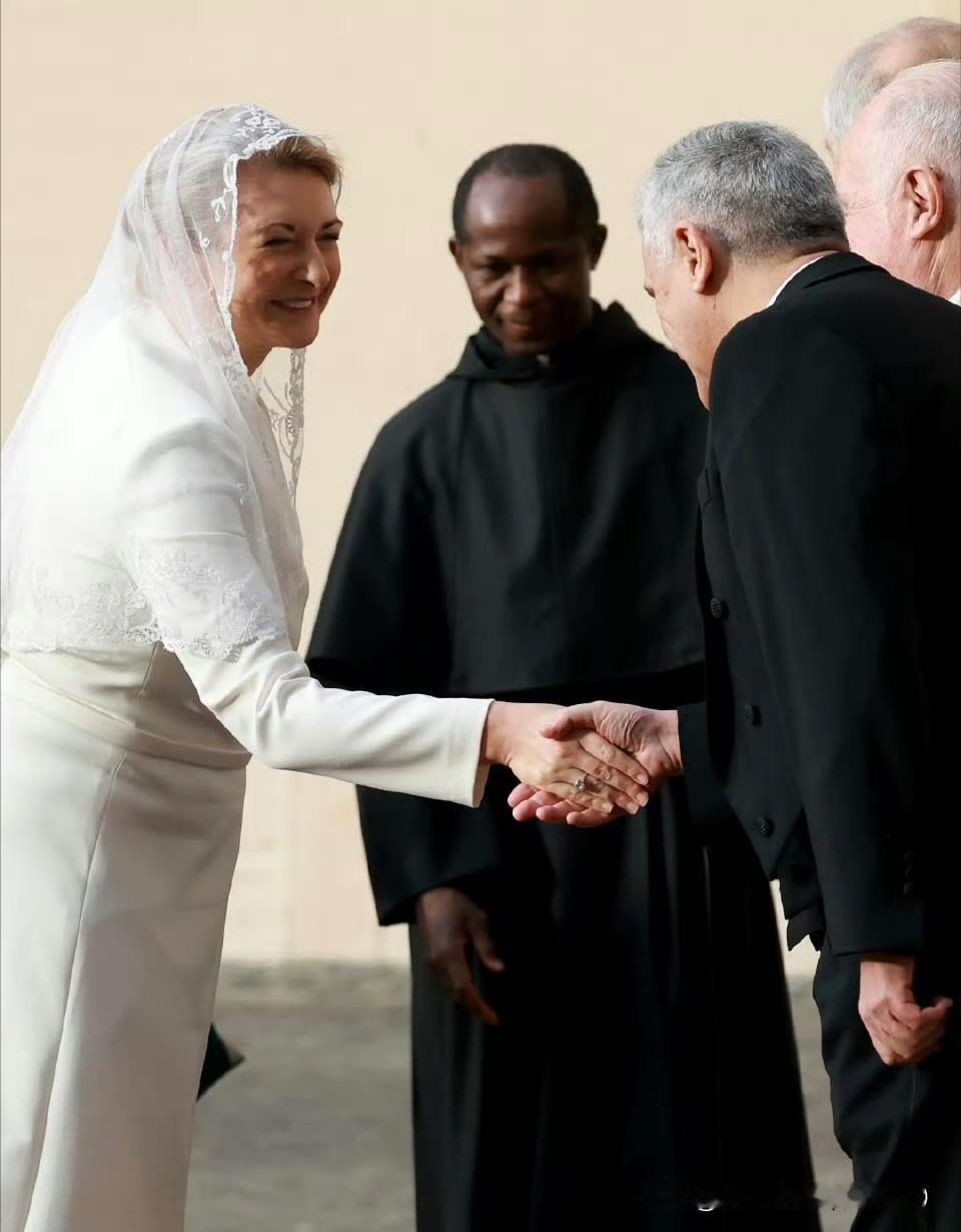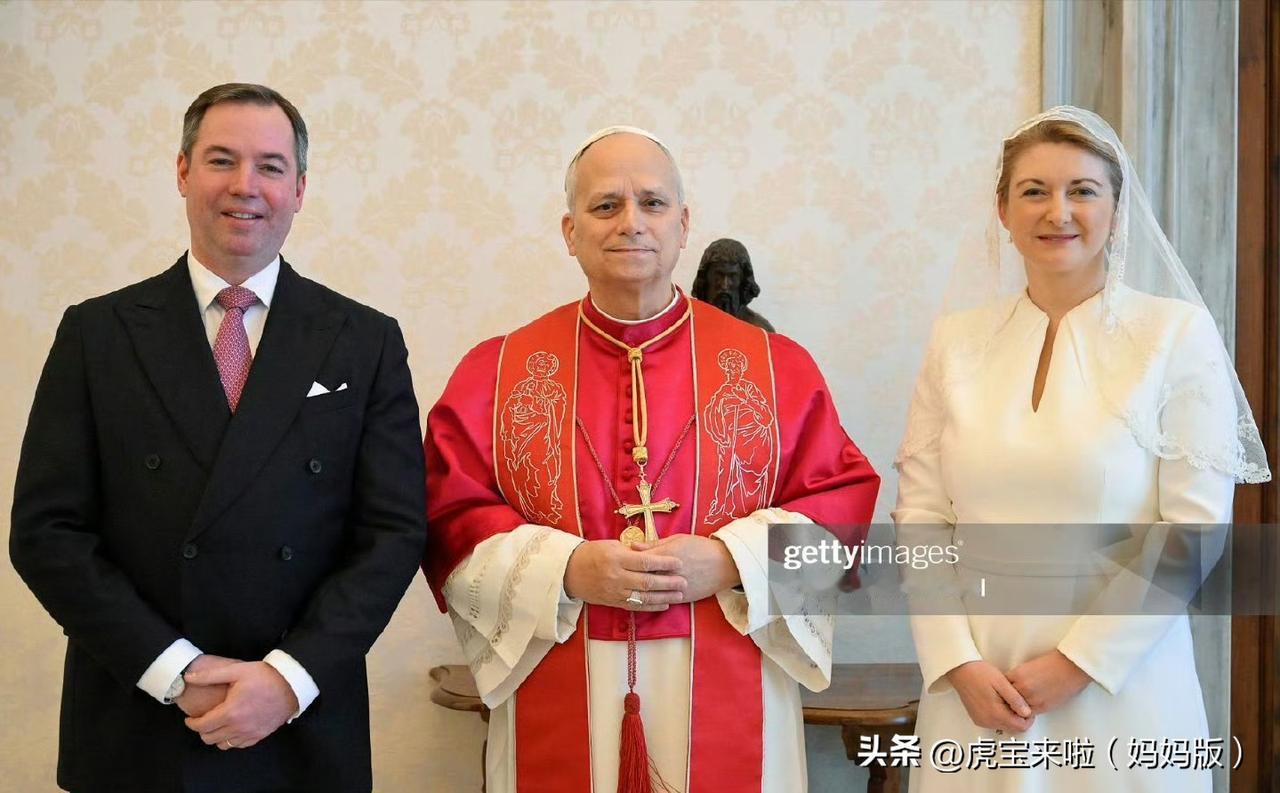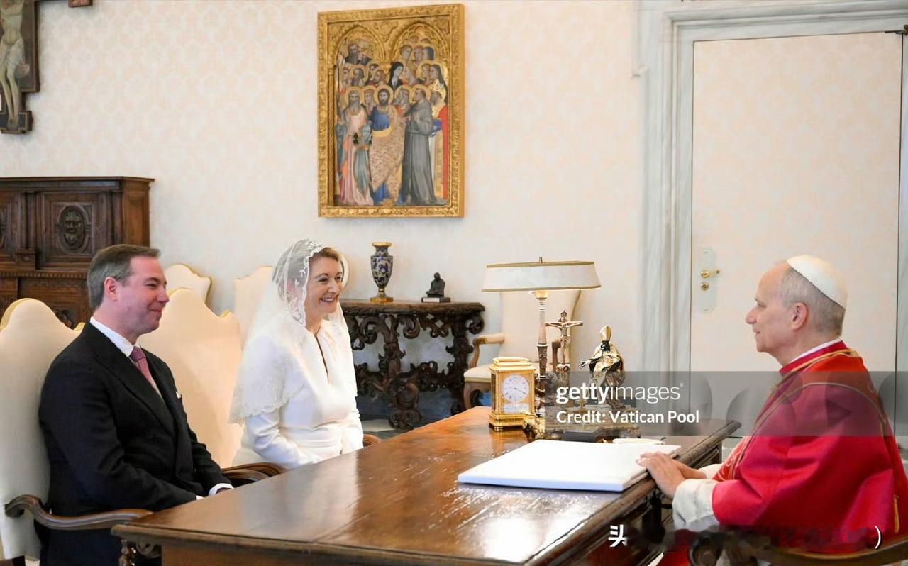 大公夫妇觐见教皇,斯蒂芬妮的白色套装,更显胖,夫妻俩倒是越来越像了!也终于见到了