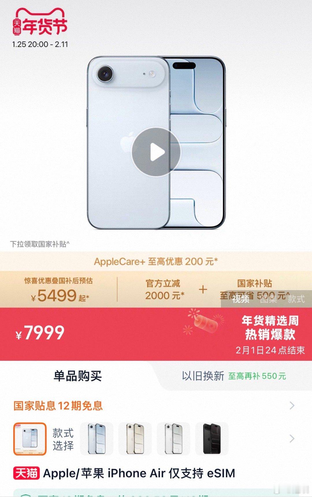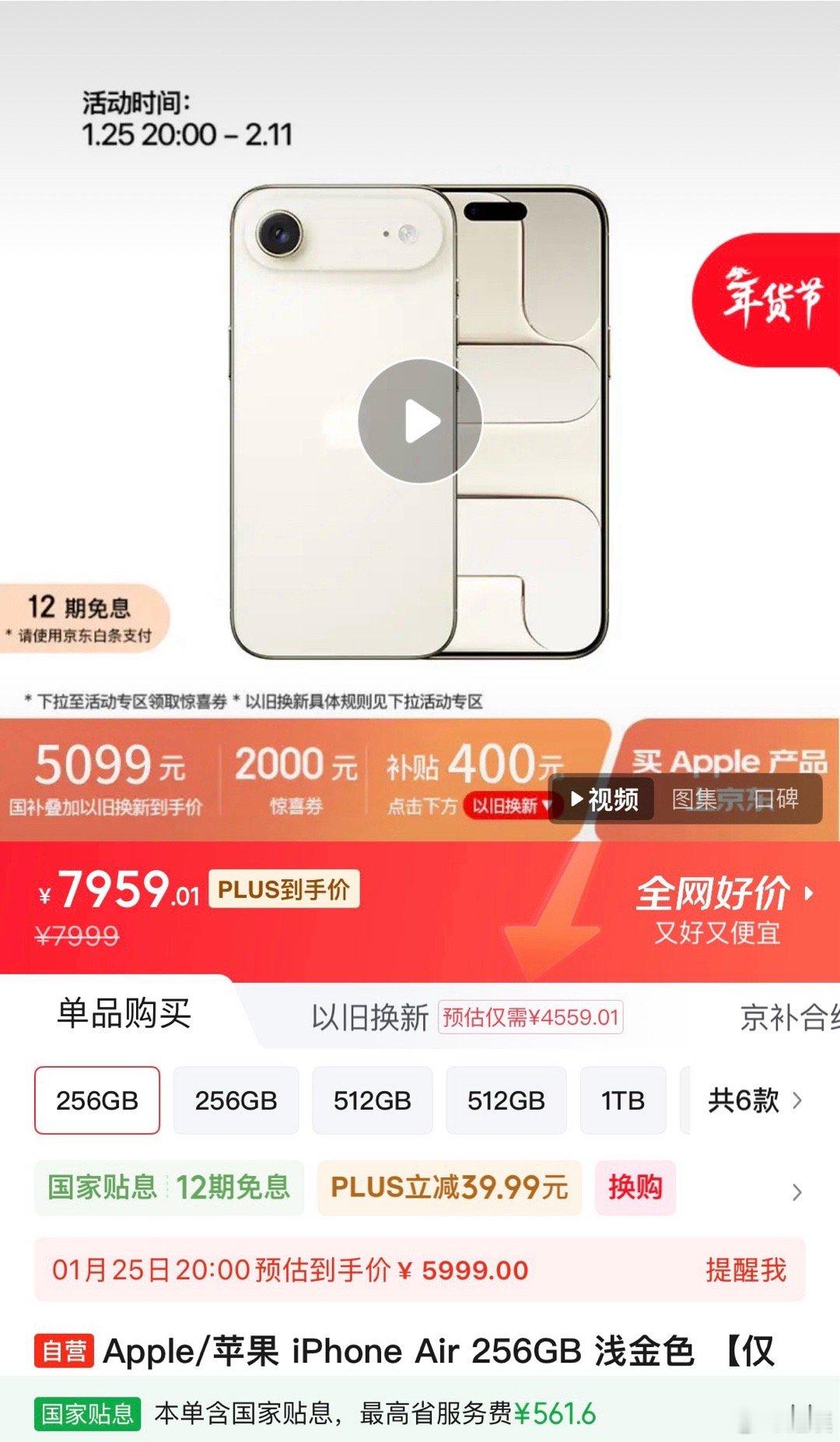 官方降2000再叠加500国补,实际便宜了2500,京东国补叠加以旧换新直接5099元,看到不少人准备冲了!iPhone Air官方价格暴跌2000元