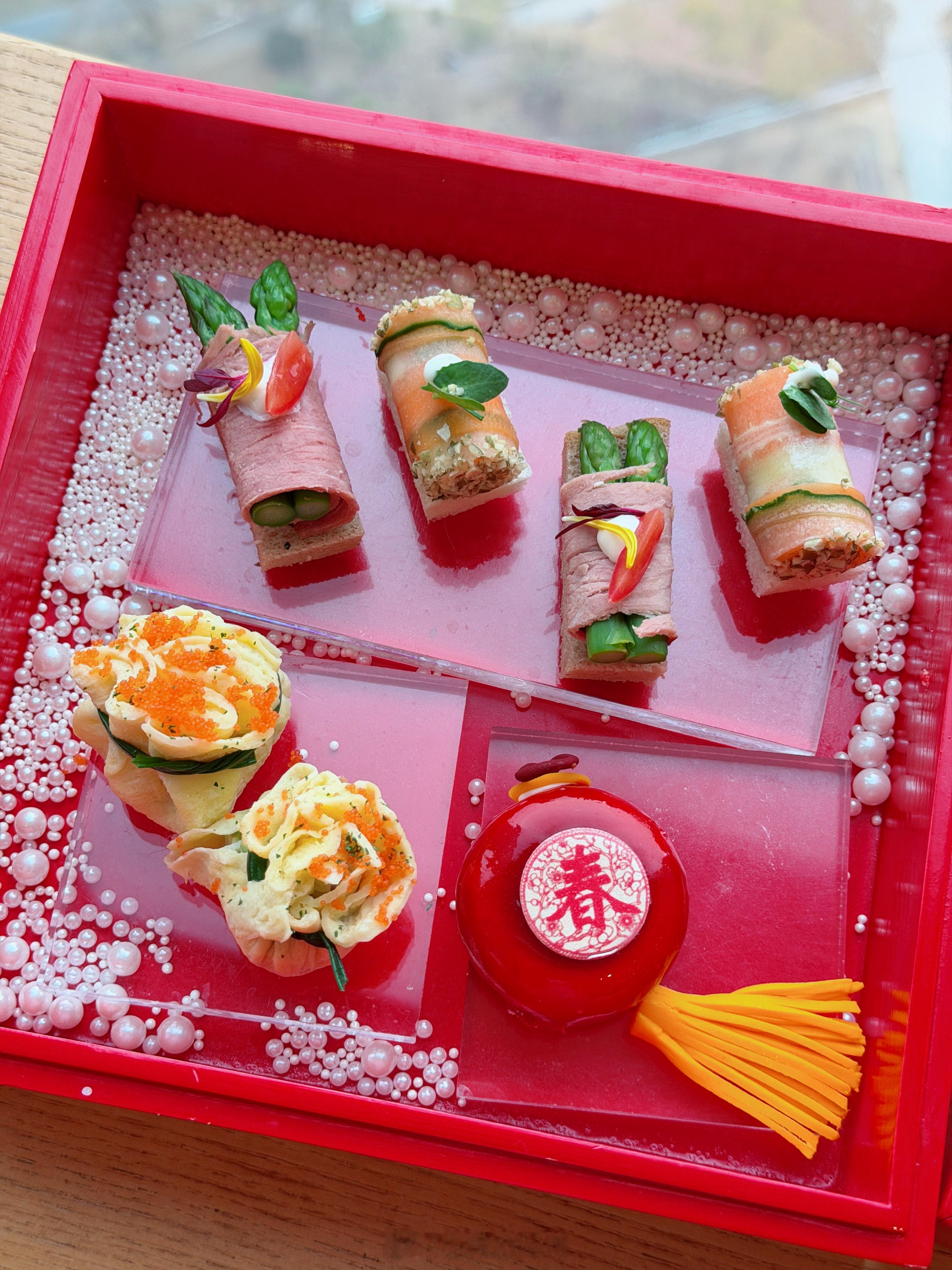 小朋友下周要考试,让他在家复习,他说要继续出门玩才有好心情,那就来三迪希尔顿看江吧!星空酒廊,本季红红火火的新春主题下午茶,和之前一样288元净价,同样的甜点咸点,摆在中式的小屉笼里就感觉很多,吃了一口才发现有个小马造型的蛋糕很萌。 福州·福州三迪希尔顿酒店