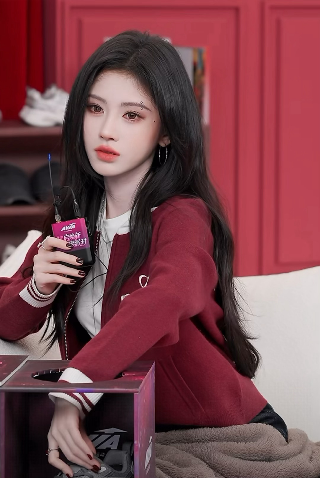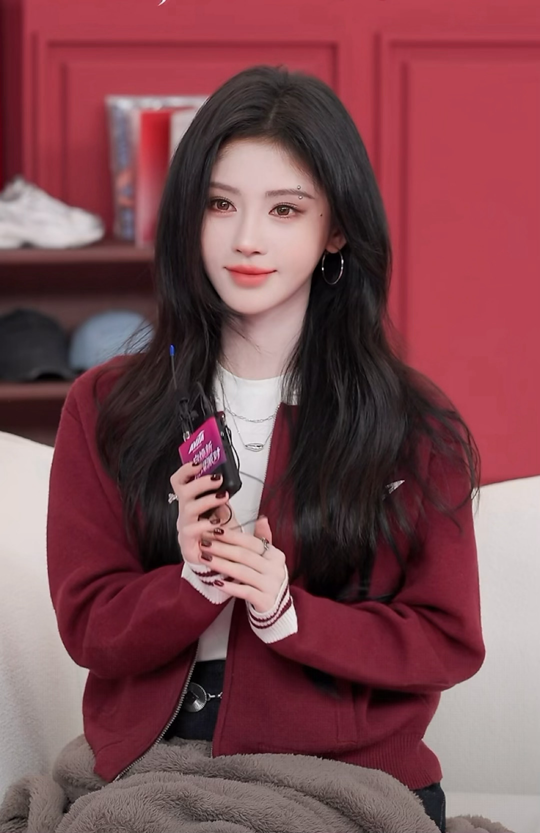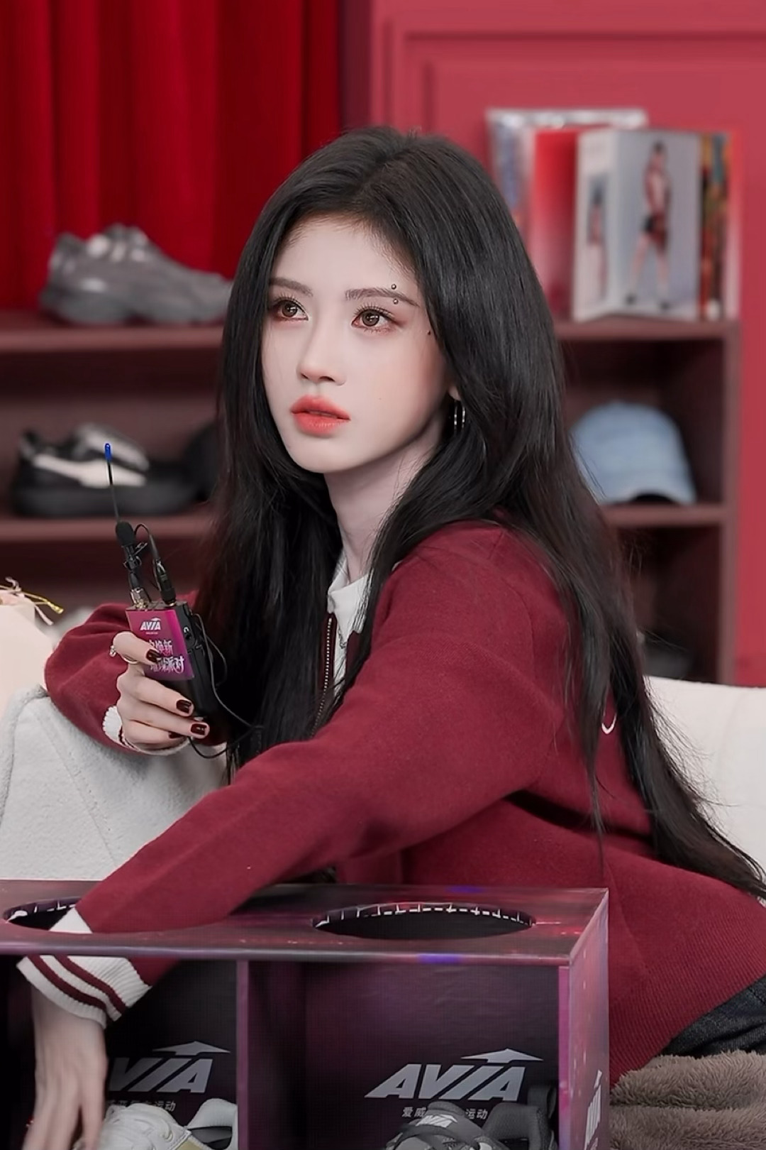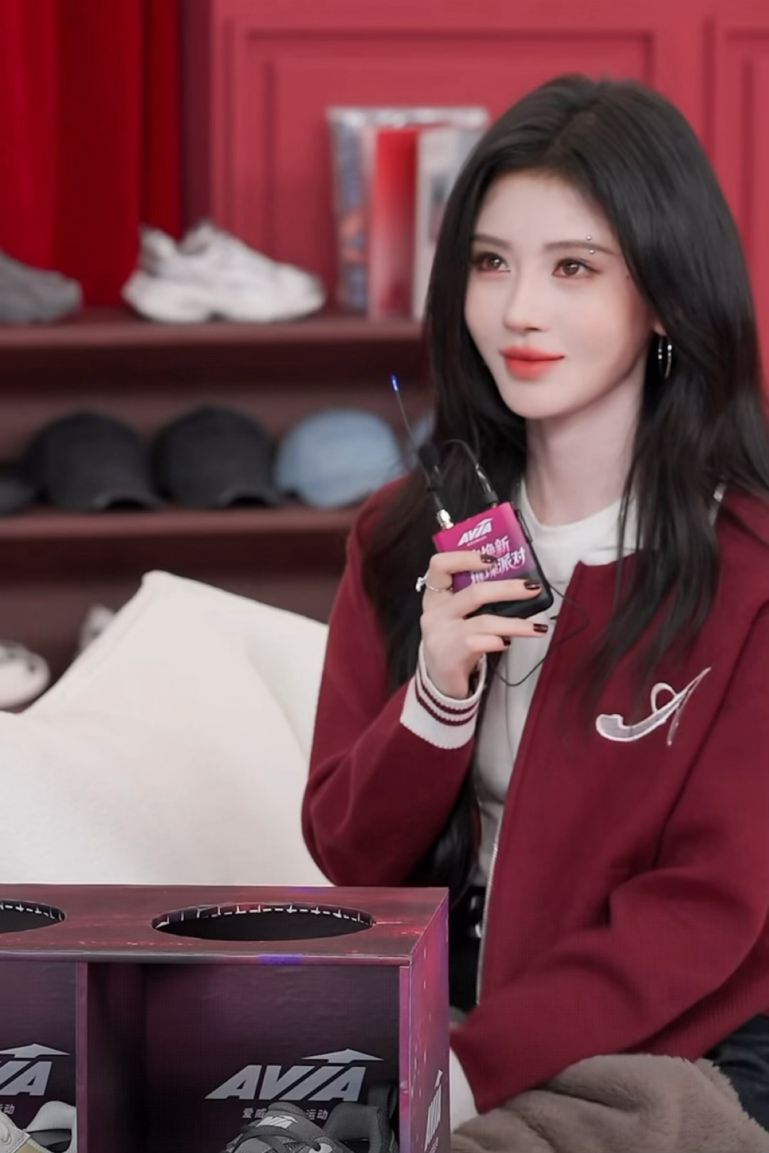 鞠婧祎今日品牌直播截图,眉骨钉造型又酷又精致!!
