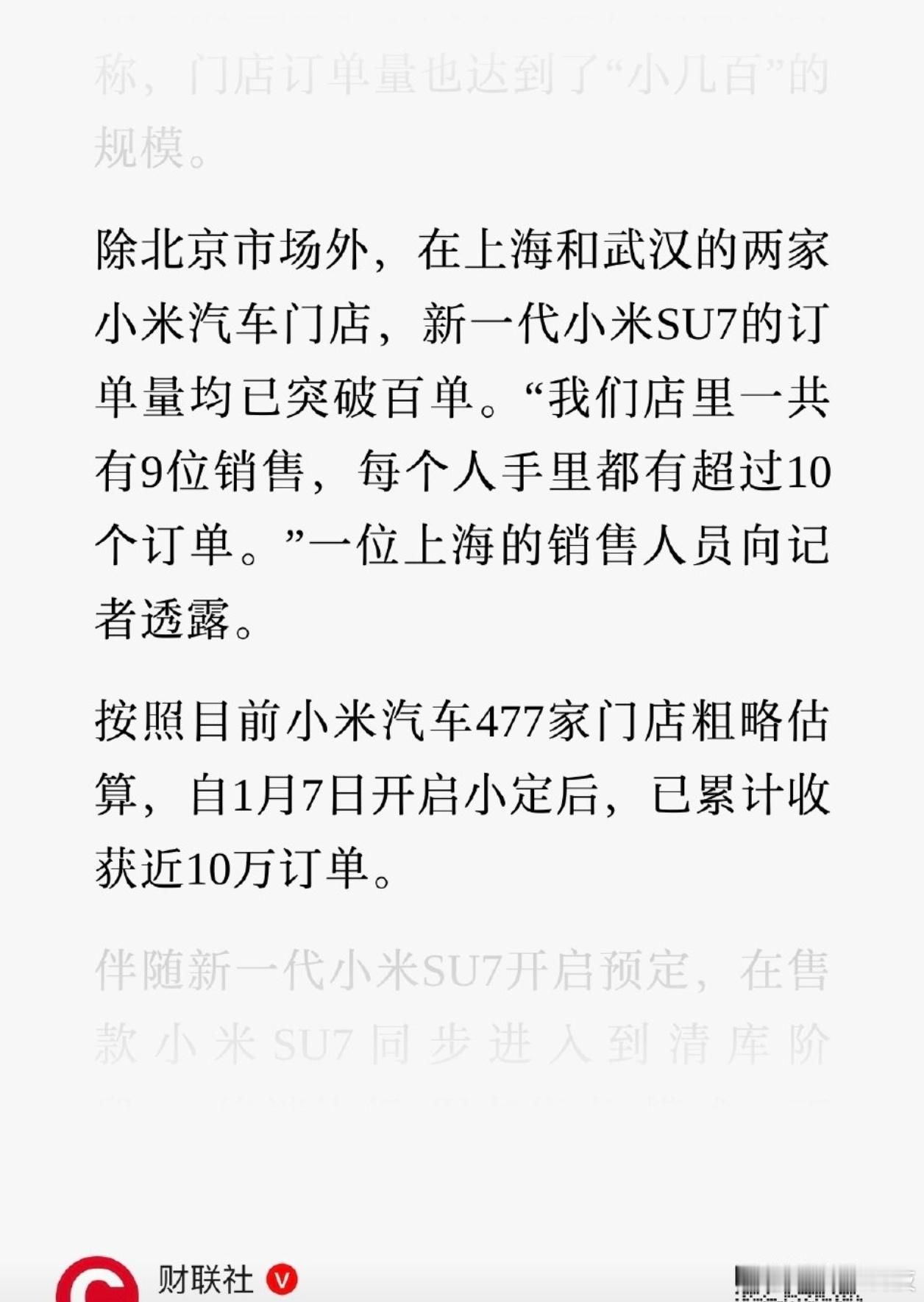 新一代小米SU7预售半月订单近10万不得了啊!看来,小米汽车前三款车型的火爆绝非偶然,因为黑粉都阻挡不住这第四款车型的火爆,半月订单近10万!!!这绝对是现象级的爆款,当然了,也可能是小米SU7的光环加持,你们定了吗?