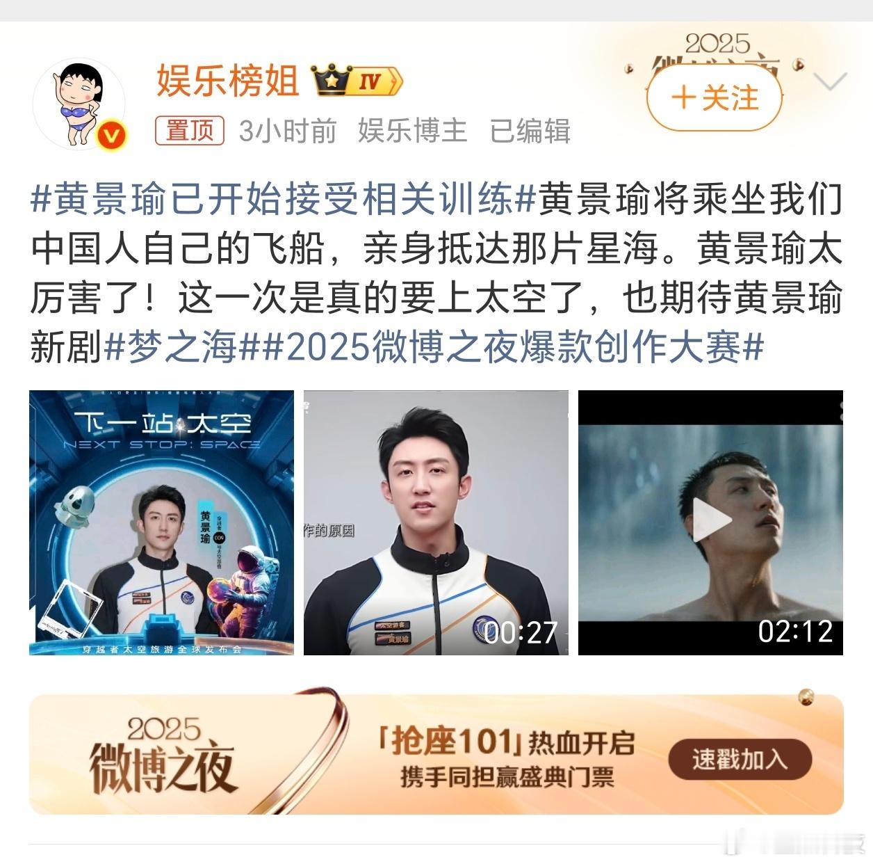 黄景瑜已开始接受相关训练真嘟假嘟啊中国太空火箭商业化吗?而且还有八十多岁的名人,甚至明星黄景瑜居然也加入了这次计划,将在未来乘坐穿越者探索太空,这是需要很大勇气的,这也将是中国航天的又一进步,拭目以待吧!!