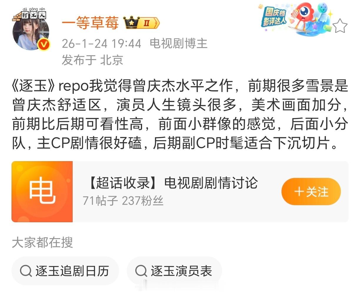 张凌赫田曦薇《逐玉》repo🈶颜霸+曾庆杰,不知道拿什么输..