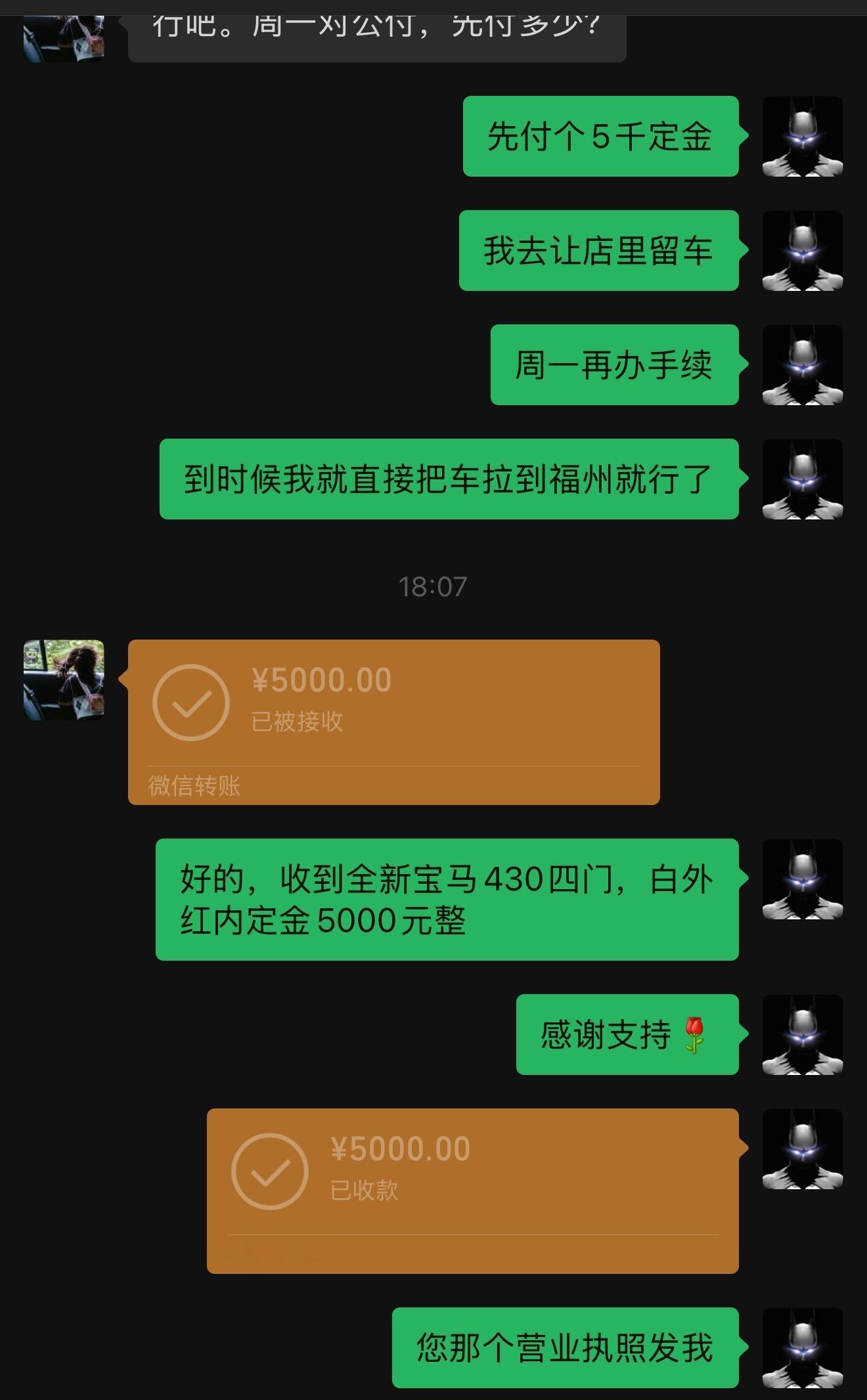 下午来的客户没定,反倒是老客户随便聊聊就定车了远在福州,基本信息聊一聊,定金就打过来让我安排了,所以说每个人的认知不一样,也都表示尊重和理解,每天通过不断的筛选客户,然后好好经营好自己的人品,让客户可以无条件信任就是最大的满足感,合同也不用签,车子也不用看最近好多老客户都突然冒出来用车需求,有了第一次合作,其实后面的复购都相对简单点,现在信息化太透明了,反而不需要太多的套路,真诚一点就够了 厦门