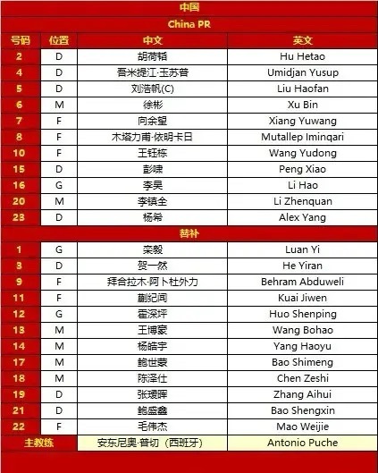 U23亚洲杯决赛,U23国足对阵日本U23,赛前双方首发出炉。本场比赛,U23国足首发对比上场调整4处,徐彬、李镇全、木塔力甫、王钰栋先发。拜合拉木昨天就因身体不适缺席训练,今天坐镇替补待命。u23亚洲杯