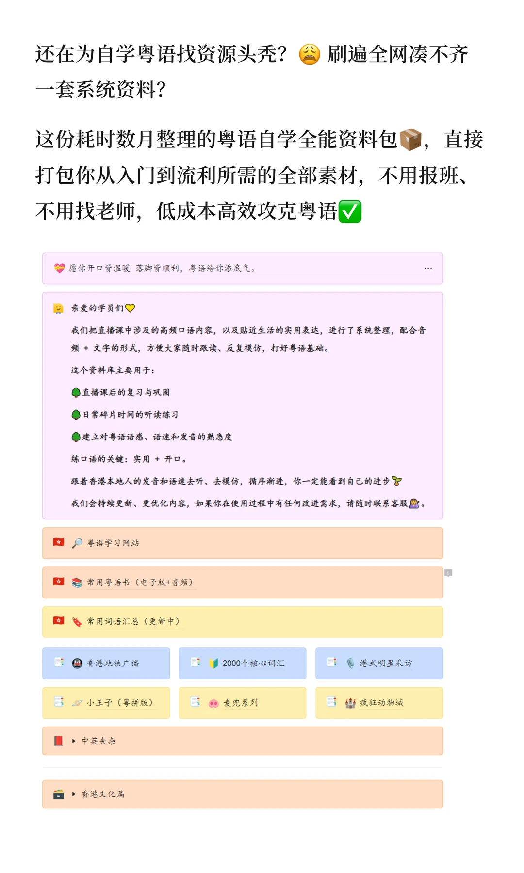 粤语自学宝藏素材库!零基础友好👍