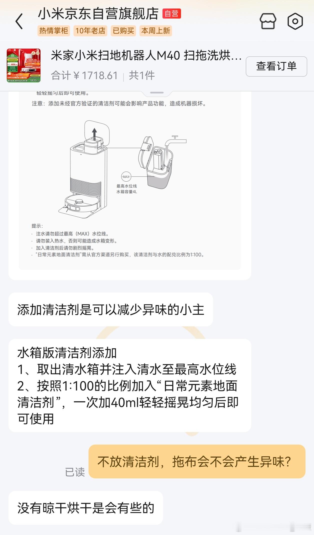 扫地机器人M40拖布发臭,实在太烦了。第一次出问题,售后建议更换新拖布;更换后过了接近2个月,又发臭了。这时候售后建议使用清洁剂,自己又特意跟官方确认,发臭的主要来源是没烘干。连续两次拖布发臭,京东和小米都没给出解决办法。。。