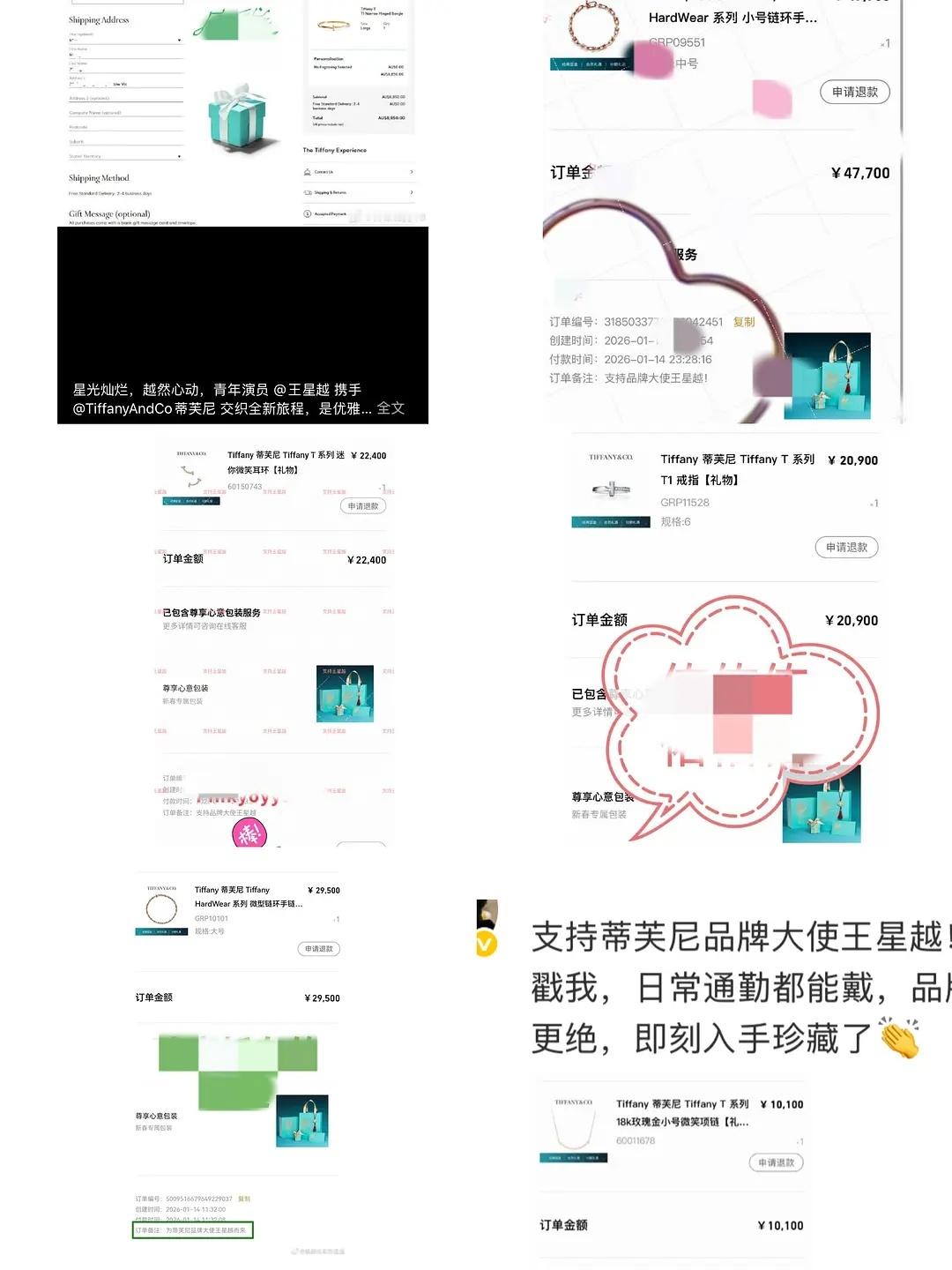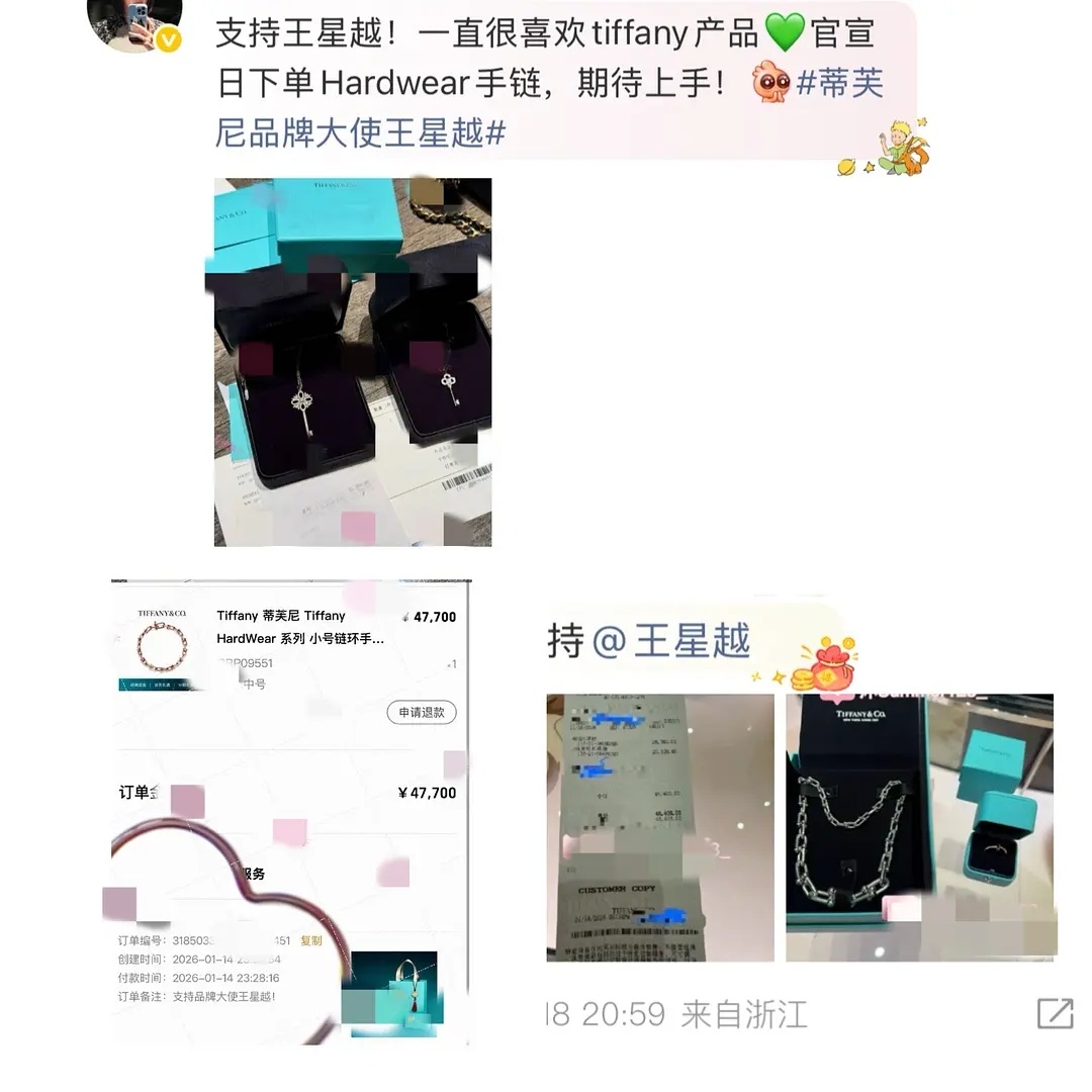 王星越粉丝路虎车代+蒂芙尼高奢晒单!00🥜高端商务能打!本月官宣路虎+蒂芙尼两大奢牌代言,粉丝真金白银支持,双赛道晒单刷屏,00生的高端商业号召力直接拉满!