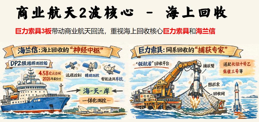 商业航天2波核心 - 海上回收 巨力索具3板带动商业航天回流,重视海上回收核心