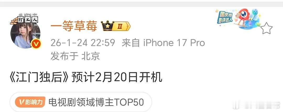 🍉王鹤棣、孟子义《将门独后》预计2月20日开机
