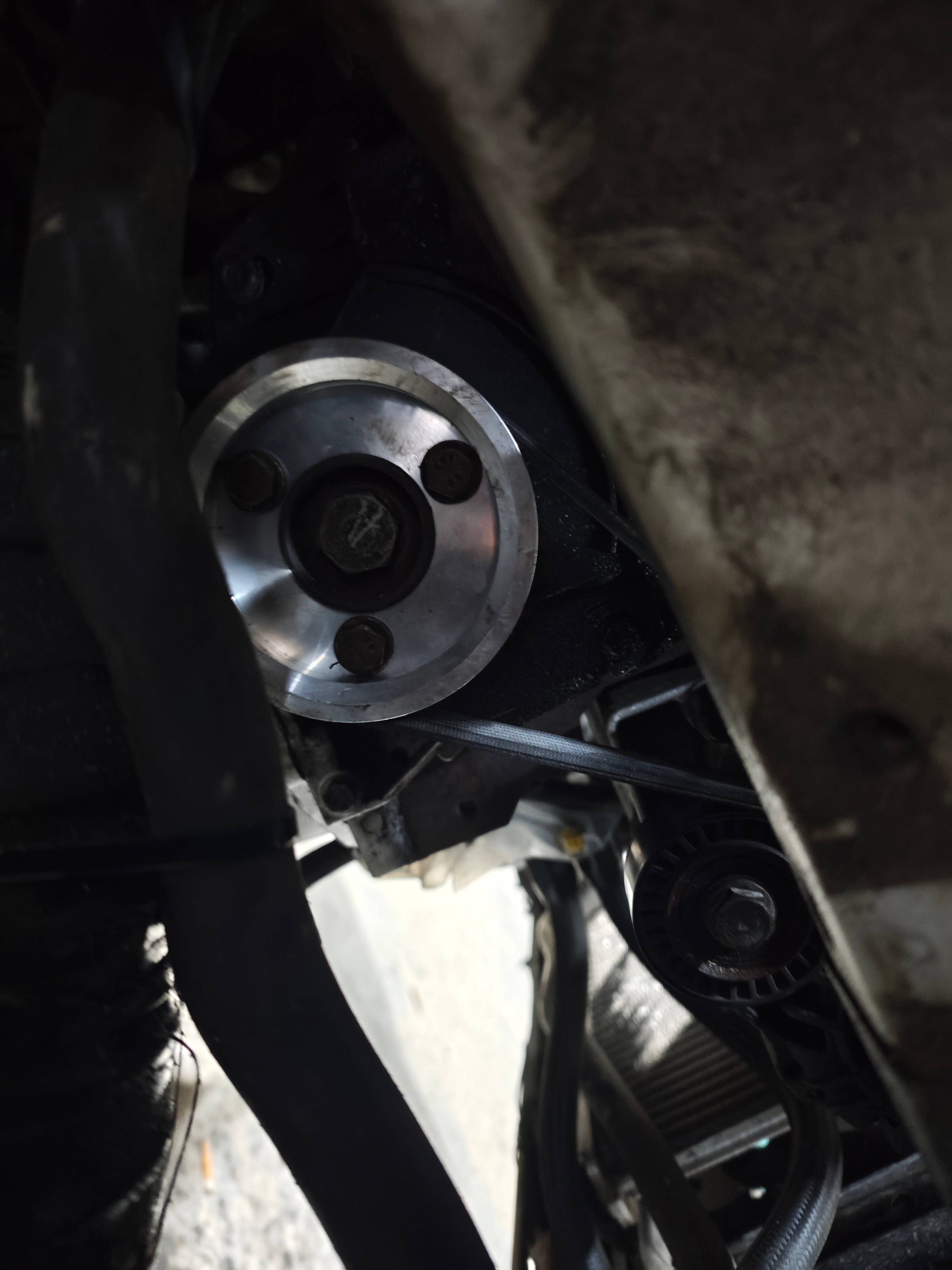 206定制小号曲轴轮。防止破转以后助力泵这边速度太快导致油液喷出。顺带手拆掉压