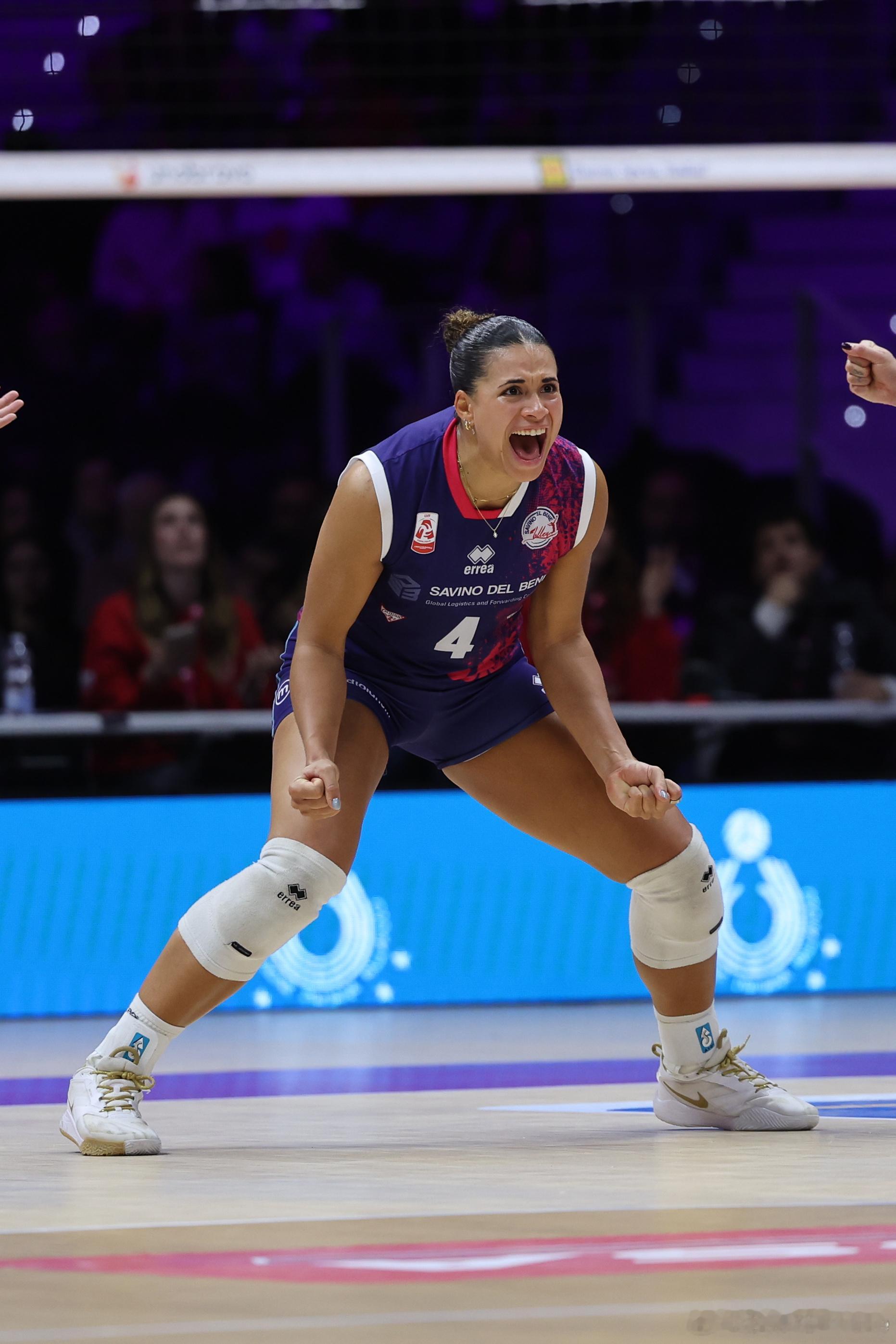 🟡🔵 意大利杯女排半决赛第二场,高快结合的斯坎迪奇与光速两翼拉开的基耶里上演五局大战,决胜局发、扣、拦等主动得分均占优的斯坎迪奇最终胜出,继25年世俱赛决赛后再次与卫冕冠军科内利亚诺一决高下。美国国手艾弗里.斯金纳独得21分,获评单场最佳。📌 斯金纳5局21分(46扣20中2失误3被拦+成功率43%/有效率32%,1发;全队第二多一传数22个1失误+到位率68%)