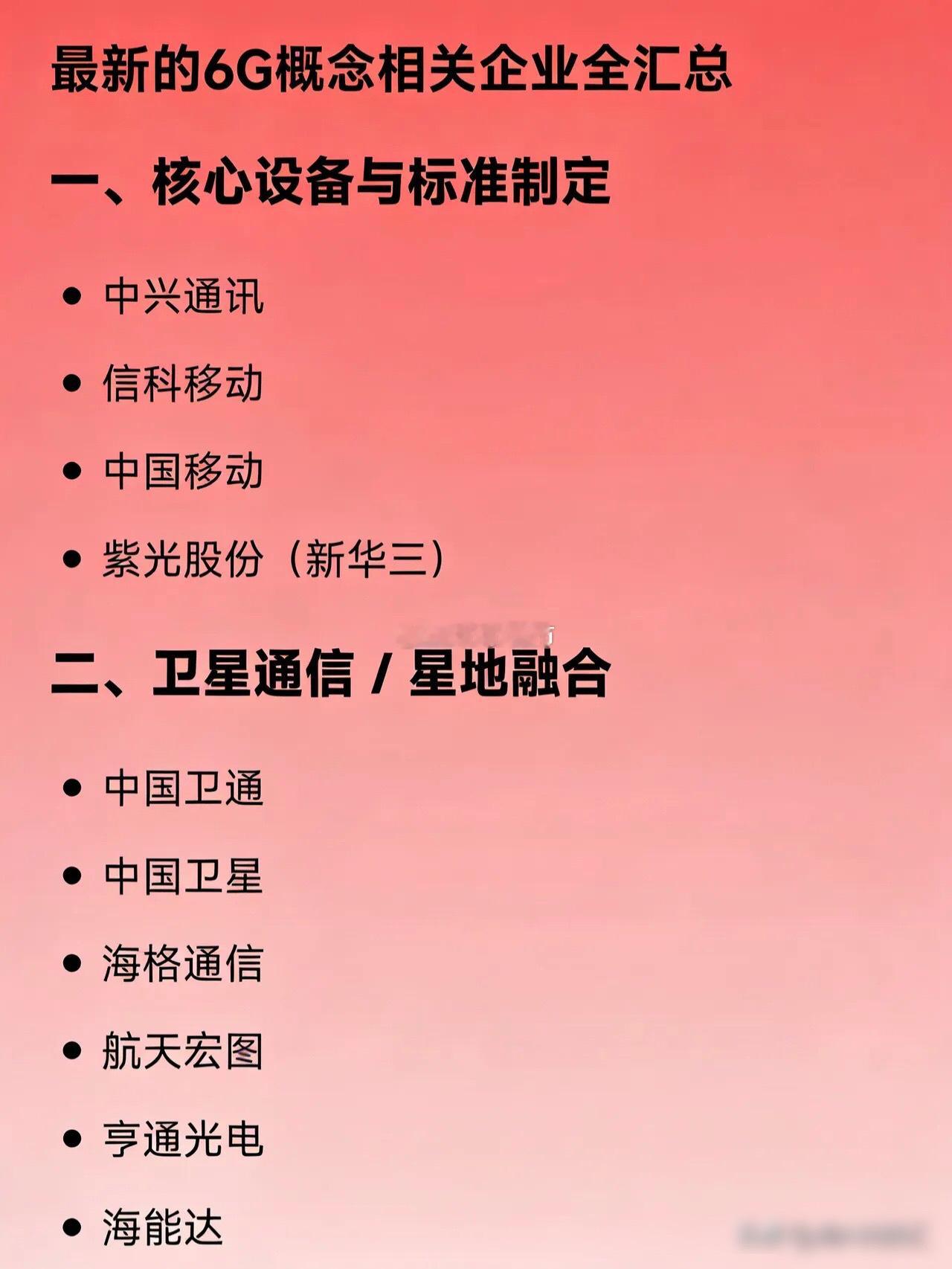 最新的6G概念相关企业全汇总一、核心设备与标准制定中兴通讯信科移动中国移动紫光股