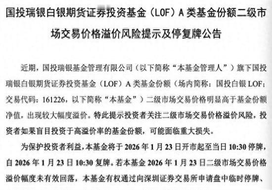 基金圈的老同事私下叹气:白银LOF这波行情,简直就是专杀眼红追高的散户。溢价都飙到50%以上了,公司这个月发了15次风险警告,今天又停牌,明摆着是怕人冲进去接盘。 他翻着内部数据直摇头:场外净值才两块五,场内价格愣是被炒到接近四块。最吓人的是,基金一边限购每天100块,一边规模单季度暴增超百亿,里外里全是套利的热钱在涌动。那基金经理报告里写白银涨得“斜率陡峭”,可没说清楚好多小散是借钱加杠杆跟的,价格一震荡,绝对尸横遍野。 现在一想到上个月还有朋友问我能不能进场博一把,我就觉得冷汗直流。这哪是投资,分明是火中取栗。你们周围有被高溢价基金套住的人吗?