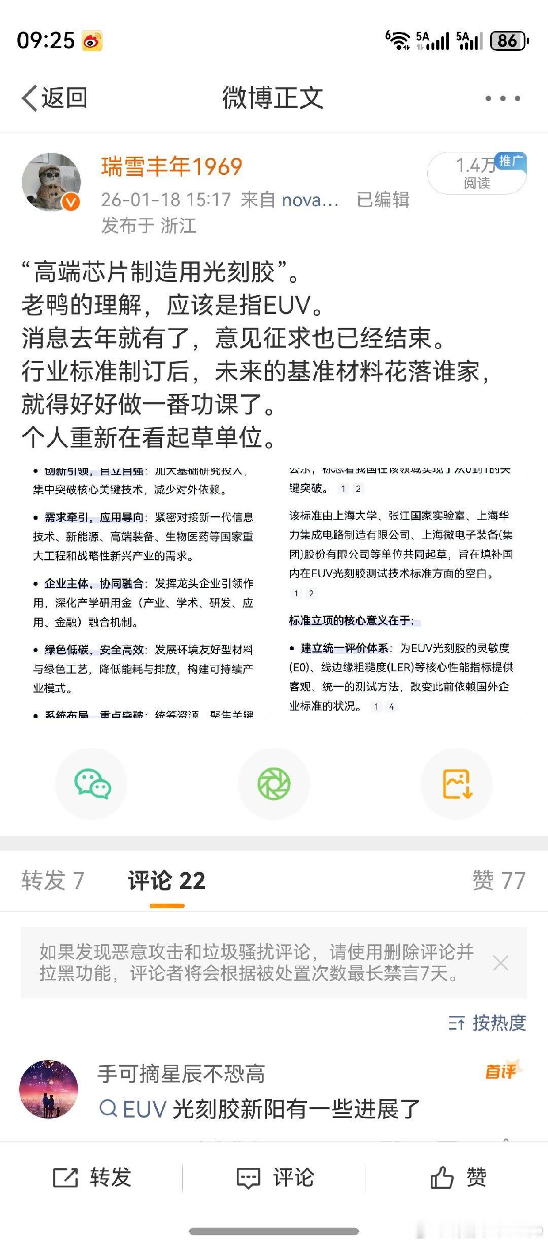 判断一个行业或一家公司,着眼点应在于刚刚开始还是即将结束。2025年已经过去,要展望的是2026年及之后的发展前景。行业壁垒,公司未来能否占据核心制高点,是重中之重。公司社会价值,目前是自主可控国产替代。行业核心技术,在可见的将来肯定是EUV基准材料,即标准材料。凡网上能看到的,绝大多数代表过去。投资者真正要做的功课,是根据最新动态,透过蛛丝马迹,预判未来。魔鬼和天使,都隐藏在细节中。仅作个人基本面分析探讨,所摘录的案例,不作任何荐股!