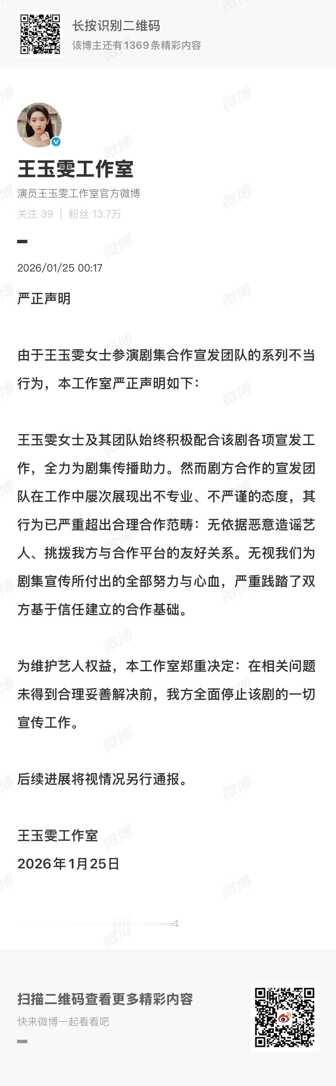 王玉雯方停止突然的喜欢一切宣传工作突然的喜欢的回应与处理声明王玉雯工作室2026年1月25日凌晨宣布全面停止《突然的喜欢》一切宣传工作。随后,片方回应称涉及挑拨王玉雯和平台关系的工作人员已被开除。围观了一下整个事件,核心还是在于不同社交平台间的竞争