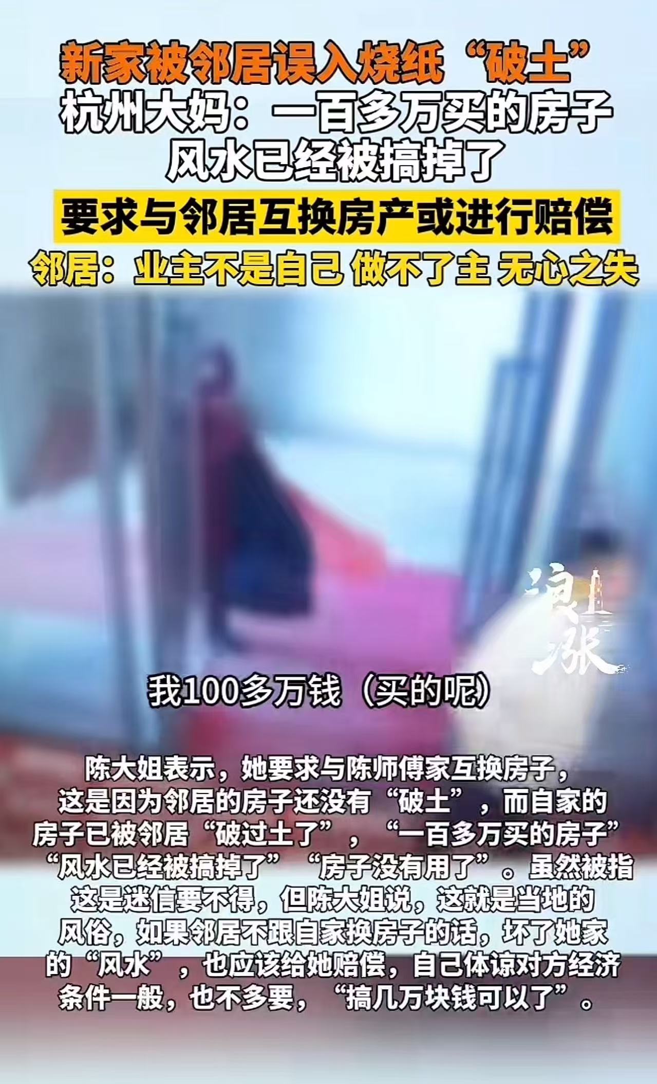 原来,邻居按照当地风俗烧了纸元宝,办了“破土”的仪式。但他粗心大意,看错门牌号,加上陈大姐的门不知道为什么没锁好就直接进去“办事”。