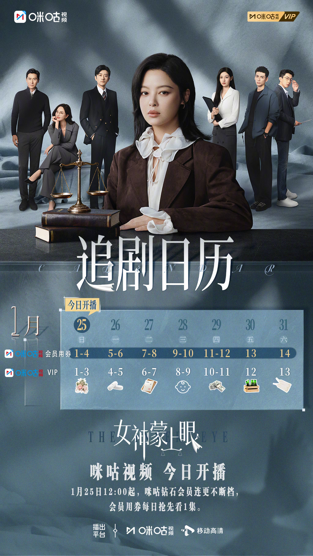 #辛芷蕾女神蒙上眼开播##女神蒙上眼开播# 追剧日历特此奉上!当网暴利刃刺向受害者,当司法公正遭遇人情考验,看他们如何在谎言与真相间点亮正义之光~ #上咪咕看女神蒙上眼# 1月25日12:00起,咪咕钻石会员连更不断档,会员用券每日抢先看1集。咪咕一键追剧:网页链接