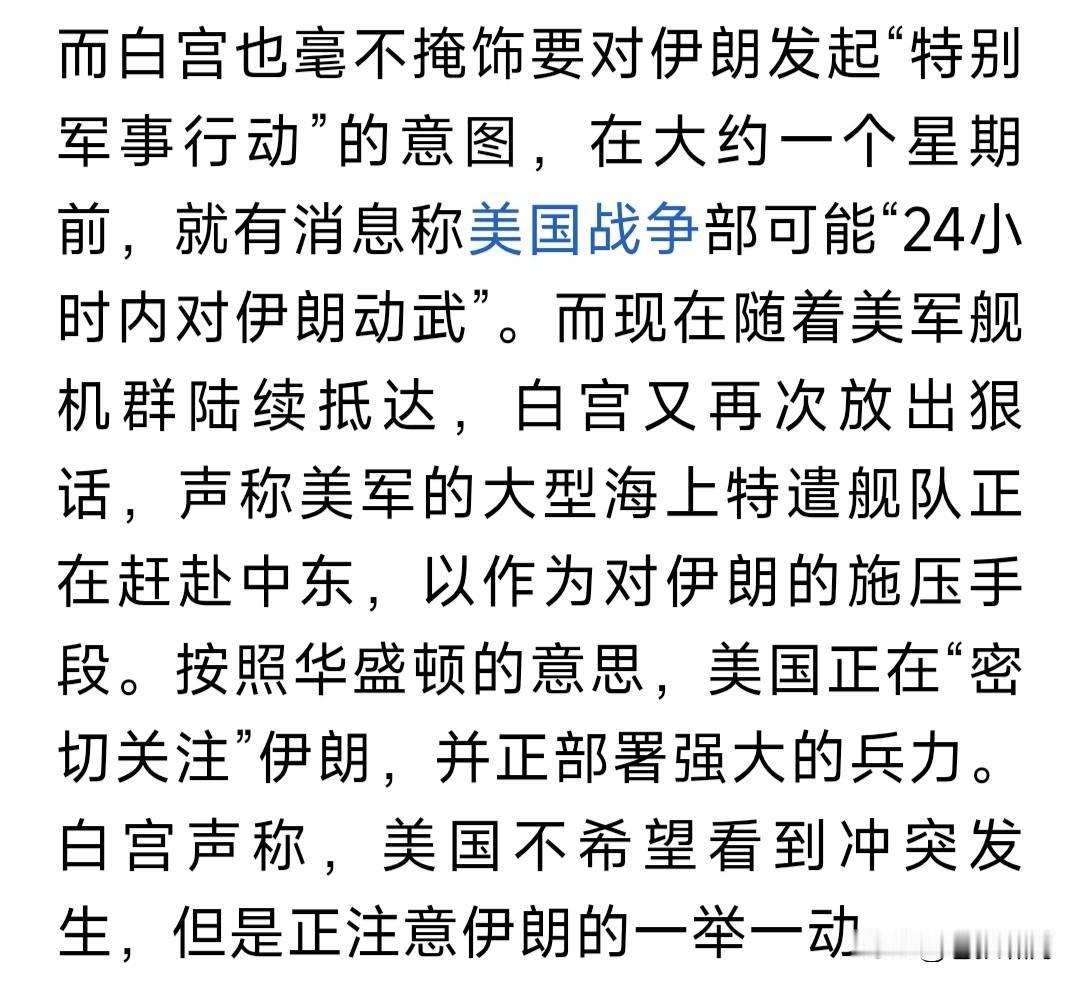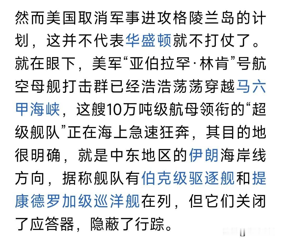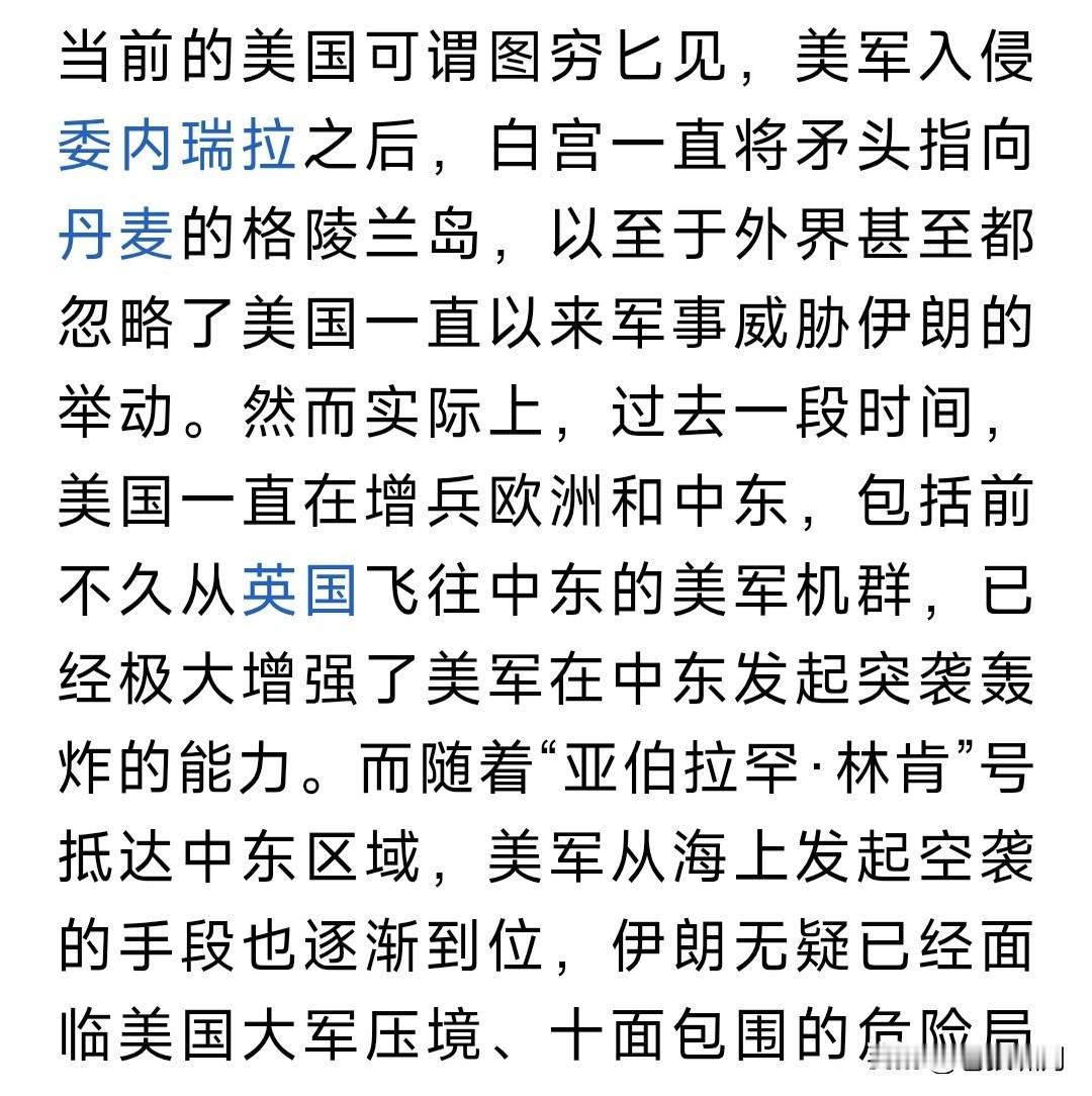 搞定哈马斯,暂缓格陵兰!三个航母战斗群直奔中东,几百架战机两万名陆战队枕戈待旦,川普要收拾伊朗? 此前老特曾警告哈伊:你怎样对待示威民众,我就怎样对你!但哈梅出于“安全”考量,还是对民众下手了! 说出大话,驷马难追?老特要兑现诺言了?虽有议员想限制总统发动战争权,但被参议院以一票优势否决了! 如此之下,川普对伊战争就无后顾之忧了!他为何要收拾哈伊神权?前天不还呼吁美伊谈判吗?都是表面文章迷惑对方,实则必打无疑。此是为何? 1.哈梅想当中东霸主,绝不放弃核武!多次谈判无果,都是扯皮拖延,嘴说不弃民用核能,实则还是核武器。 2.以色列是美国在中东最铁盟友!伊朗是以色列最大威胁,彻底废其“武功”,才能确保以色列中东霸主地位。 3.哈伊是中东“反政府武装”支持者!多年不遗余力扶持“哈真胡”恐怖势力,反美反以致动乱,中东动荡不安。 4.如果搞定哈伊神权,不仅中东从此无忧,还有助于解决俄乌战争,促使双方停战和平,两国人民不再遭难! 看目前伊朗情况,示威者虽被暂时压住,但并不说明风平浪静!居美伊朗裔开始游行,要对哈伊采取行动。 他们要求美国当局,驱逐哈伊高官的子女,冻结没收他们的财富!因伊朗人民遭受磨难,他们却在灯红酒绿! 苍狼有点不理解:怎么还有这事呢?而且不仅是哈伊,那些反美国家的高层子女,为何都在美国移民居住呢? 还有这些游行的伊朗裔,都是一些什么人?都是巴拉维时代的遗民?巴拉维王储的随众吗?可以肯定是这样。 目前美伊局势紧张!川普箭在弦上不得不发,哈梅嘴上强硬心里咋想?关键是美以一旦开战,对双方伤害肯定超过上次!无辜的老百姓又要遭难了! …………