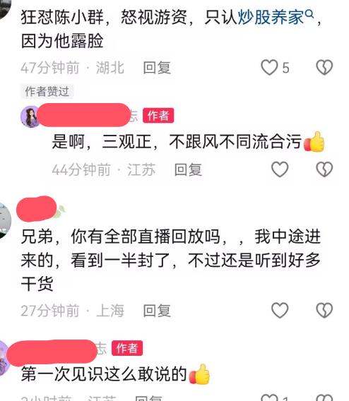 全能的野人大骂陈小群!最近博主全能的野人晚上开直播,对陈小群和余哥游资破口大骂,说陈小群终究会成为历史,还透露上面对两人已经罚款了!不过他们退居后,后面肯定又会出现新的游资继续这样做。野人哥还表示,陈小群真的懂情绪周期吗,当初航天才开始,他就故意用几个小目标永辉,引导散户跟风。那时候是因为他的航天被人砸了,但陈小群走后,航空依然起飞。而陈小群的席位溢价也是去年才起来,终究被反噬,野人哥直言,不要相信这些所谓的神人,都是后面有人在推的,最终目的都是为了收割散户,海格就是一个很好的例子。 直播间的网友都表示,野人是真敢说啊,真的为了散户着想