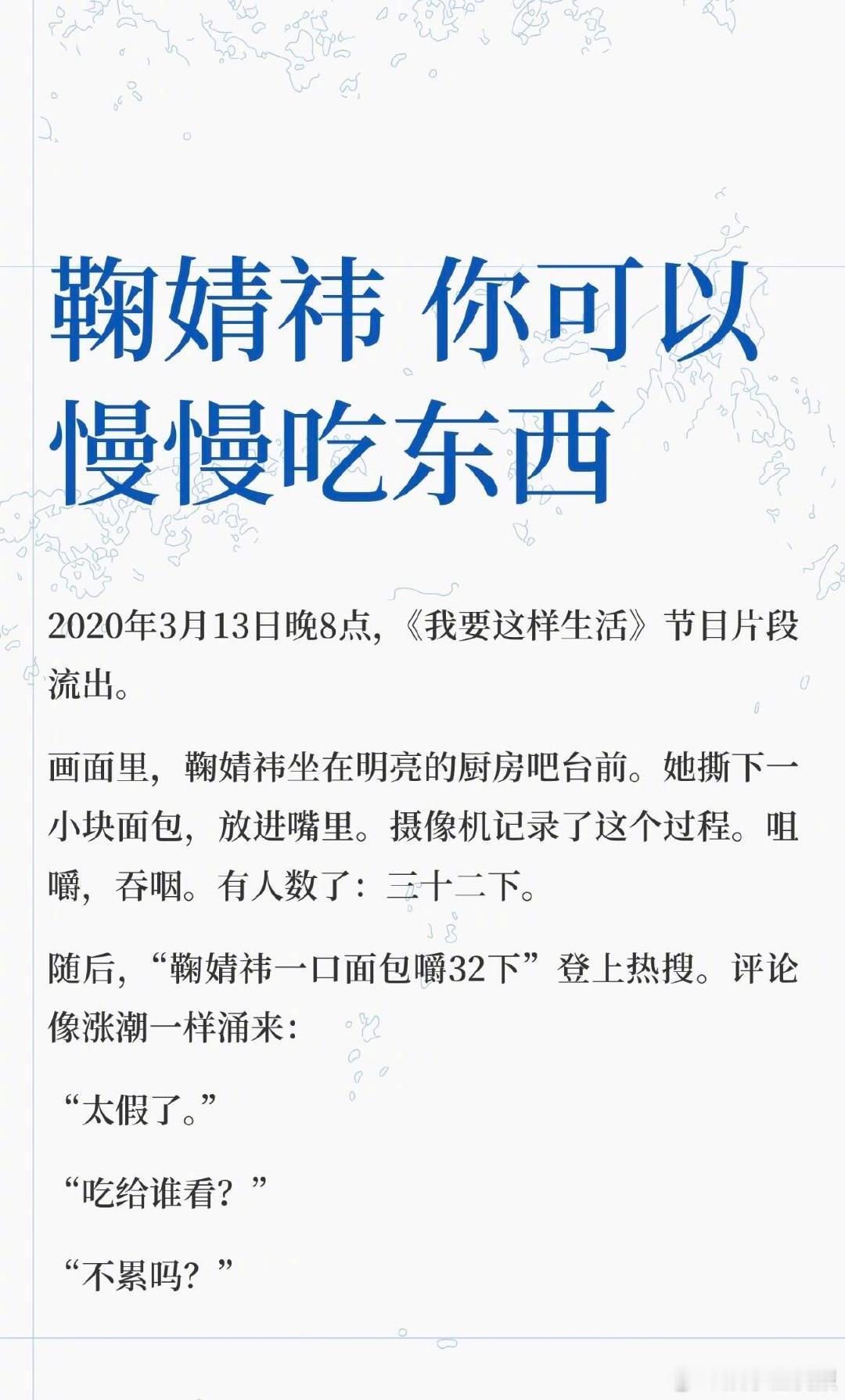 鞠婧祎不辩解不改变只是继续鞠婧祎你可以慢慢吃东西看完博主为鞠婧祎写的长文