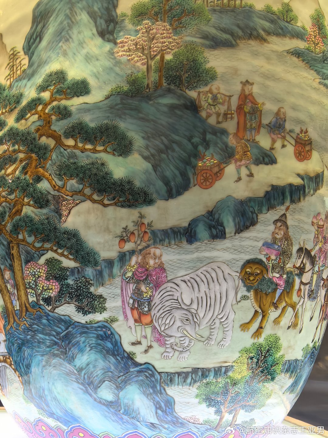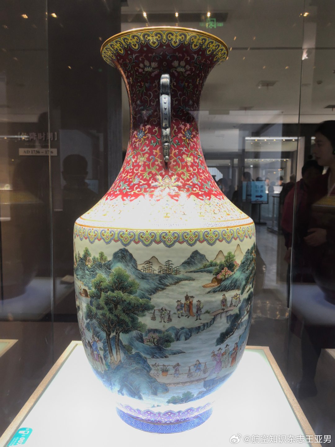 马戛尔尼觐见乾隆一事,竟然在景德镇博物馆看到了瓷器版——乾隆洋彩万国来朝太平尊。从图案看,当时从朝廷到百姓对这些打着为乾隆寿辰祝贺旗号且迟到了两年多的英国使团并不真正了解,也不清楚那个能从万里之遥派遣船队到中国的英国海洋实力究竟如何。我们同样不知道的是,近代科学催生的近代工程技术,已经让英国稳坐世界头号列强的交椅,我们所相信的天朝上国,正在世界巨变之下迅速滑向危险的边缘。四十多年后,鸦片战争爆发,此时当政的道光帝恐怕怎么也想不到,四十多年前还在“朝贡”的英夷竟然如此凶悍。