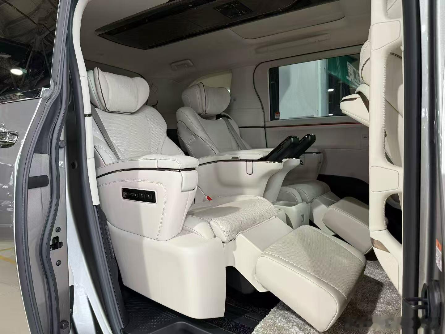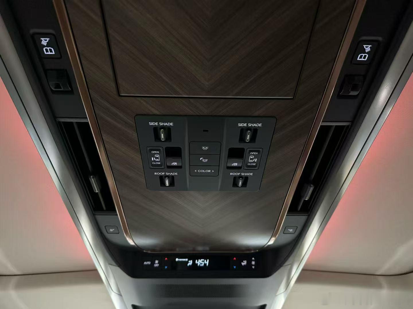 雷克萨斯LM500 六座。外观上,经典的无边界纺锤形进气格栅搭配细长前灯组,大气又时尚。悬浮车顶的视觉效果,加上贯穿式尾灯组,整体造型十分吸睛。