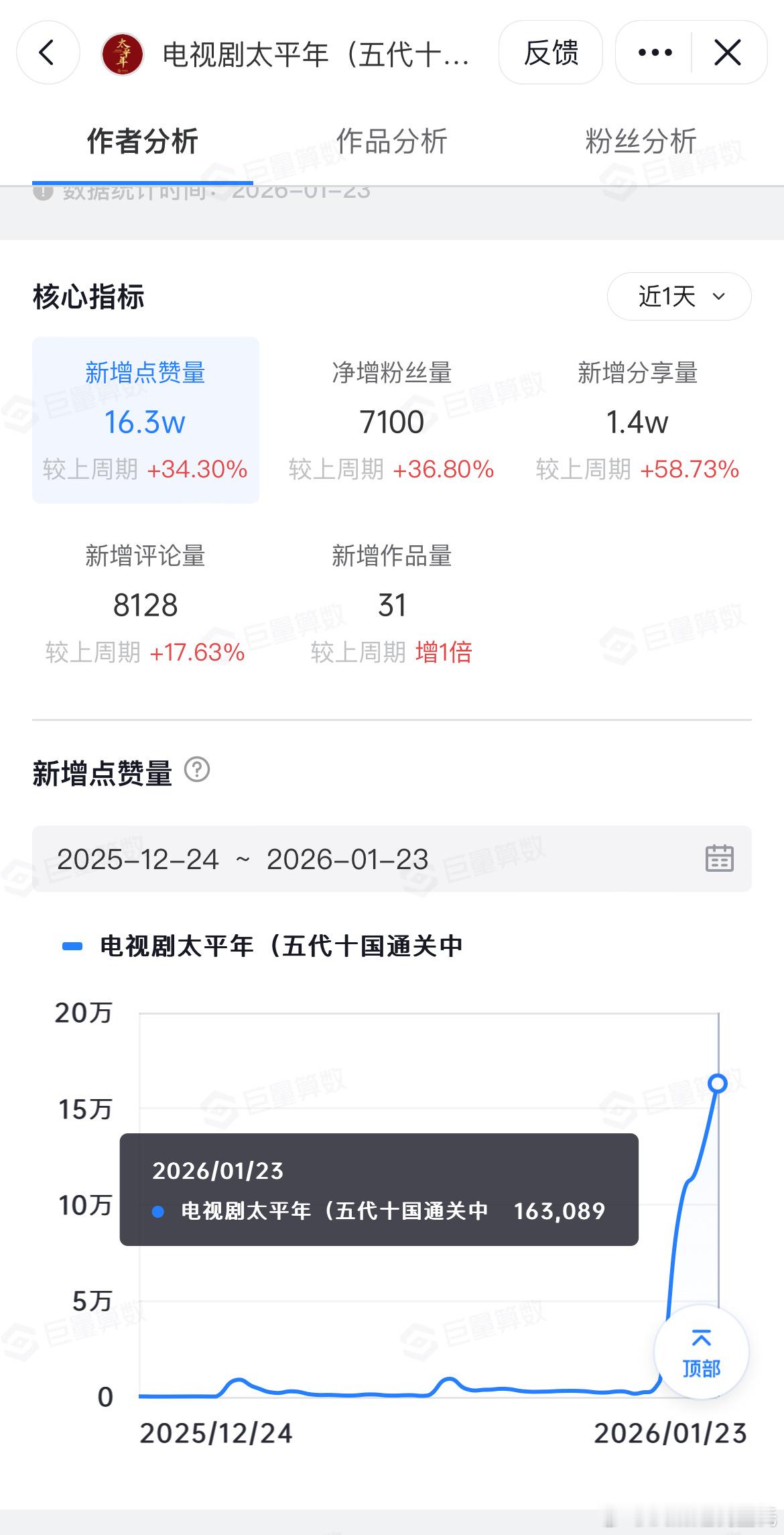 太平年次日百指有15万,和前两年比看着不高 ,但已经是近期算高的了抖指“太平年”没收录,只有官抖“电视剧太平年(五代十国通关中)”,16.3w
