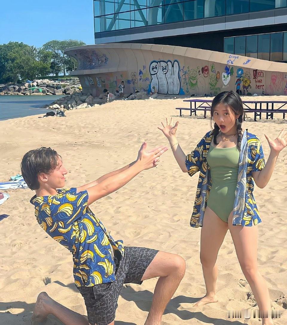 入乡随俗这话一点都不假! 以前黄多多刚去留学没多久,就很快融入当地的生活了。 她分享了和朋友出去玩的合照,从照片中看得出她的打扮都是很大胆的,其中还有和男留学生在沙滩互动的照片。 而那时候的她才刚刚17岁。
