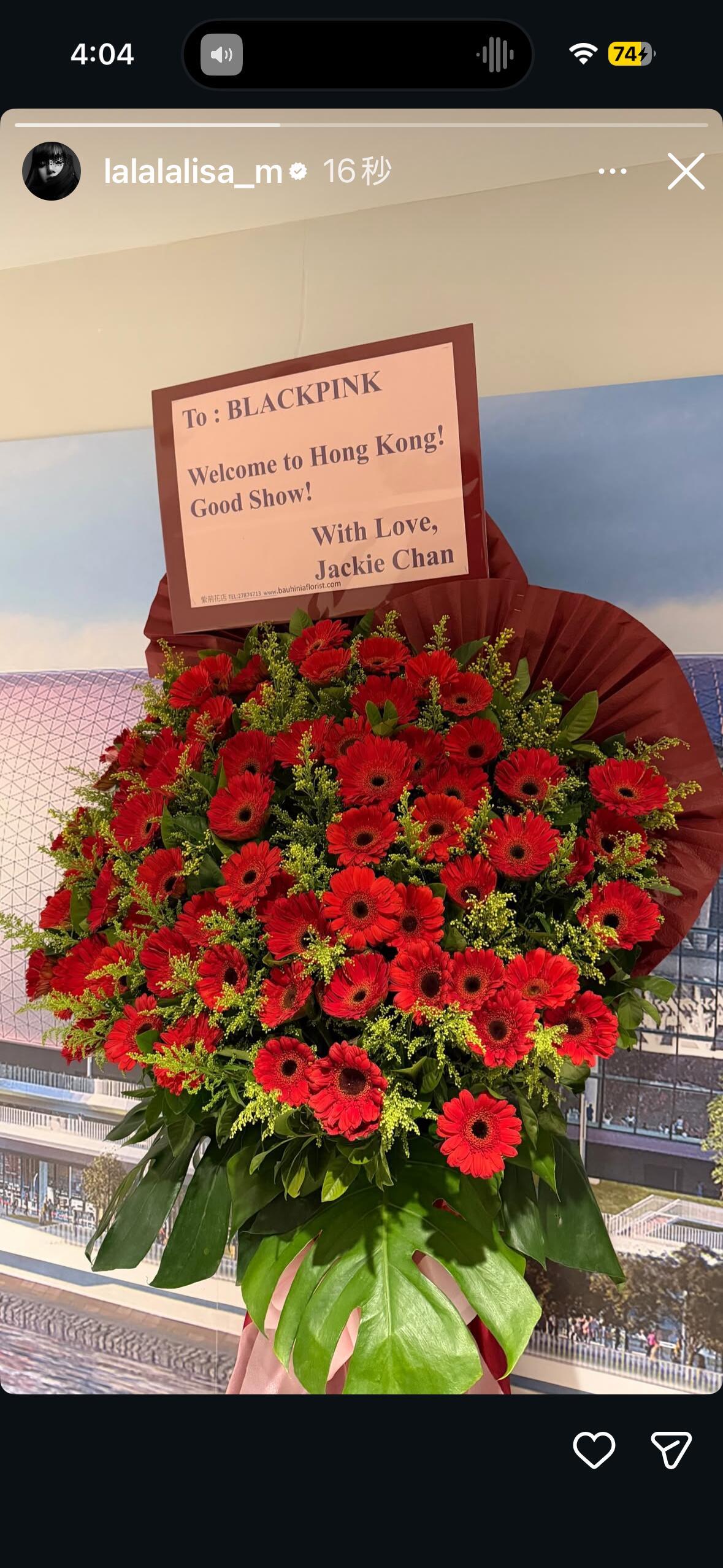 Lisa更新动态:成龙送来的花难道他们后续有合作吗?