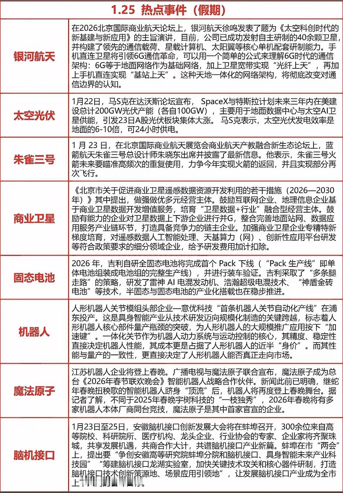 1月25日周末热点事件报道 科技趋势速递:银河航天、太空光伏、朱雀三号等前沿科
