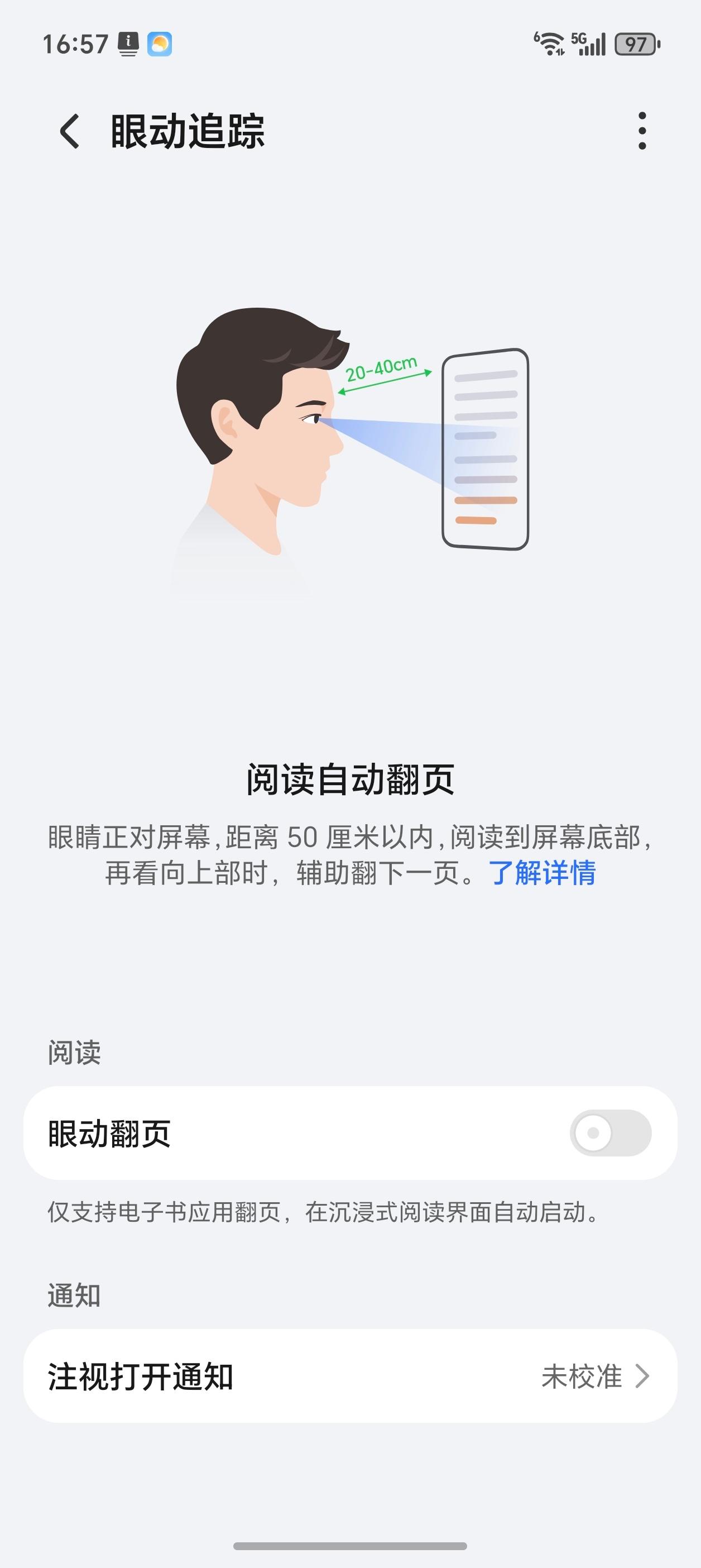 荣耀手机也有眼动翻页的功能了,试了试还挺好用,不费手了。