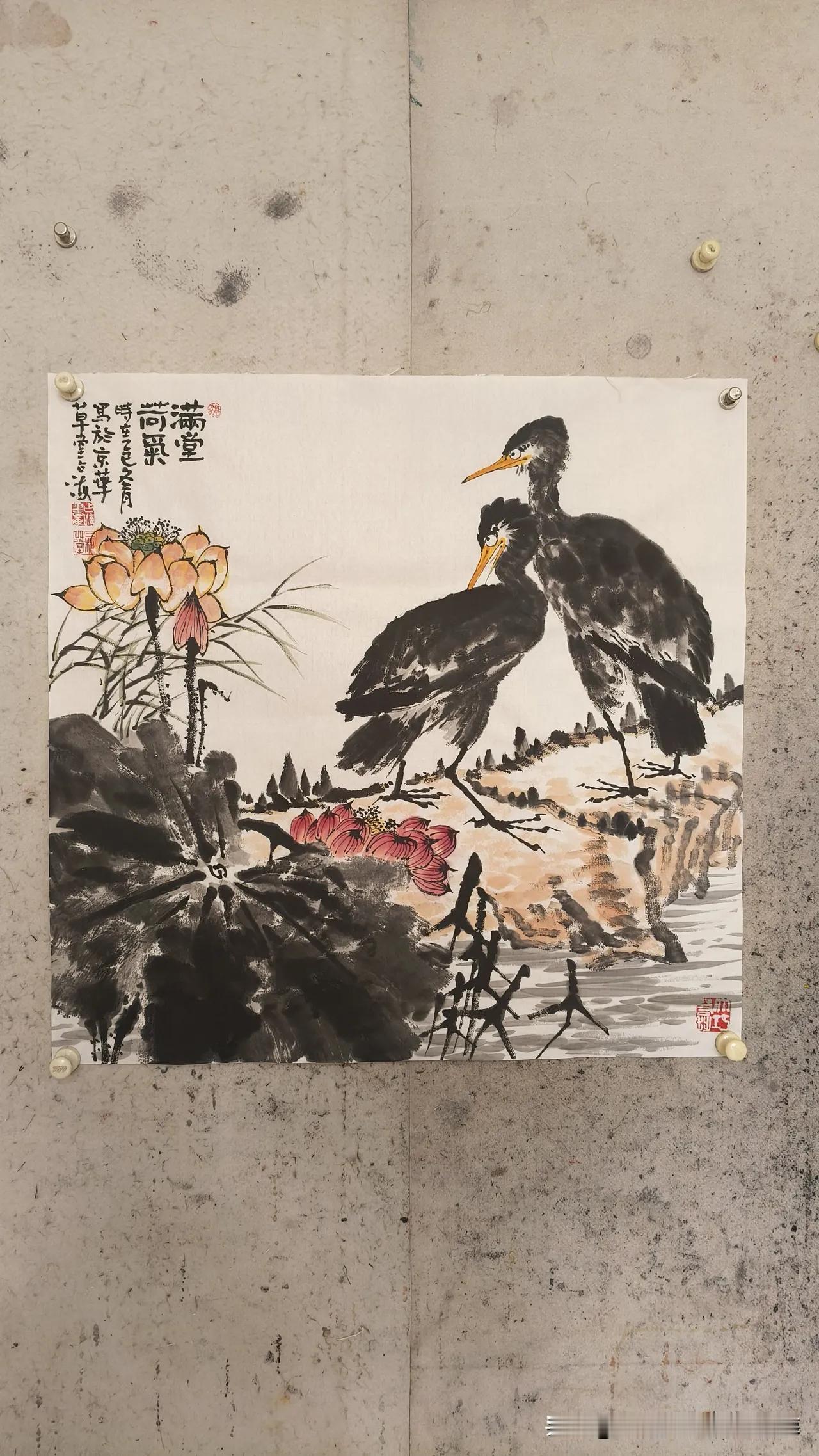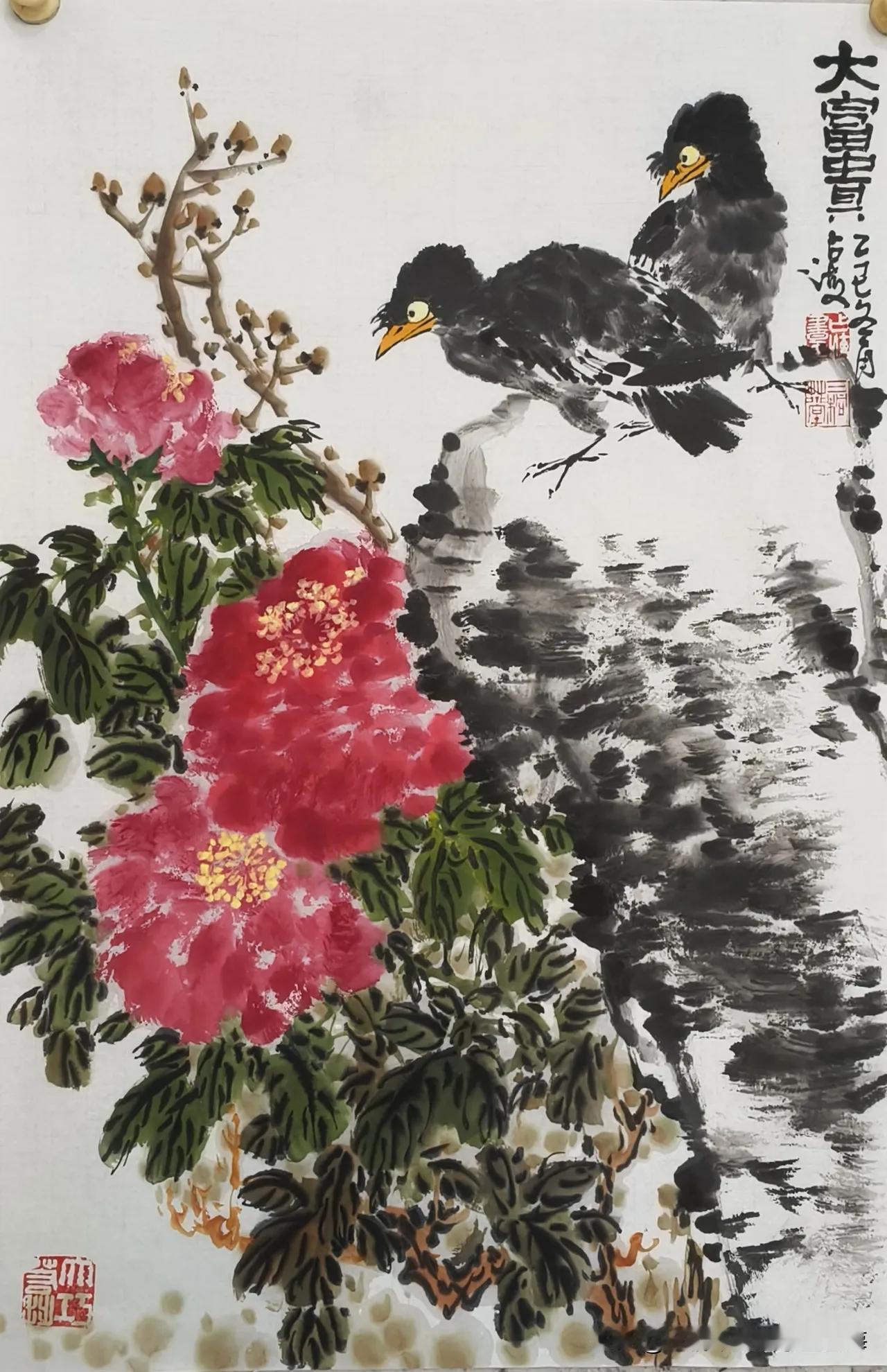 王占海老师画的花鸟画,幅幅充满有生活气息,富有野趣,来源于作者对生活的认真观察而得的结果。@三桐草堂画家王占海