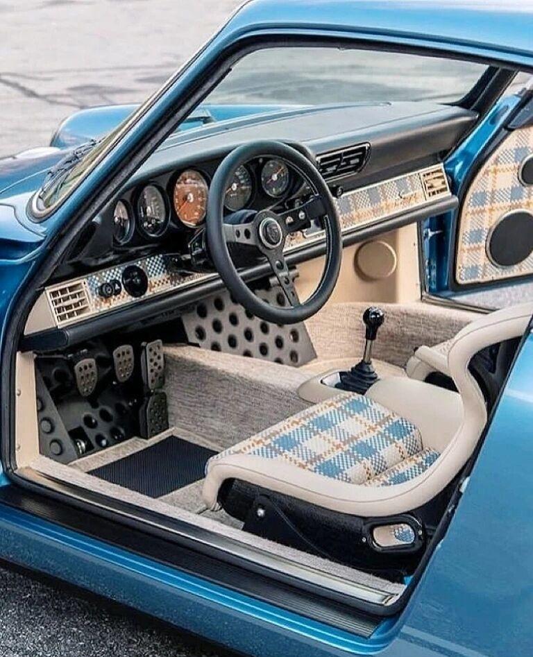 火遍改装圈的Singer编织,这样的质感美学谁能不爱?Singer经典编织系列内饰案例欣赏 有人说,升级爱车的内饰是一种享受🙋 今天给大家分享个性化汽车内饰定制案例 - 顶棚与后备箱被米灰色翻毛皮温柔包裹,触感细腻,经典复古蓝格纹编织➕真皮内饰座椅,既保持了复古的韵味,又增添了一抹时尚潮流‼️高级感满满 编织工艺也给汽车内饰形成了独特的美感 - 💺座椅、仪表台、方向盘以及门板都采用了进口纳帕真皮包覆,让驾驶者和乘坐者感受到舒适和高质感。这样的升级不仅让车内变得更加美观大方,也提高了整个驾乘体验。 - 分享🚗内饰的每一种可能 对于改装,你喜欢,最重要‼️ ✅改装分享案例来自Singer 同款国内现在也可实现哦~如果你也喜欢singer风,那你也一定是个有品位的人🤝 让我们一起为这辆改装完的🚗点赞吧!